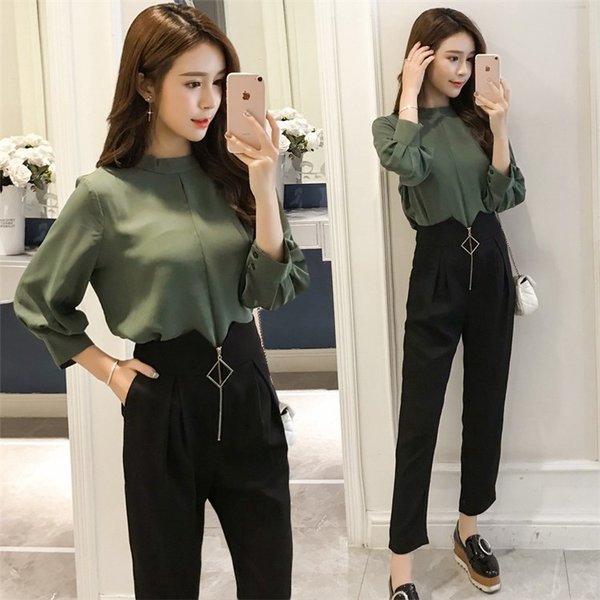 セットアップ レディース シャツ パンツ 大人 細身 20代 30代 40代 ママセットアップ 女性 パンツ2点セット おし