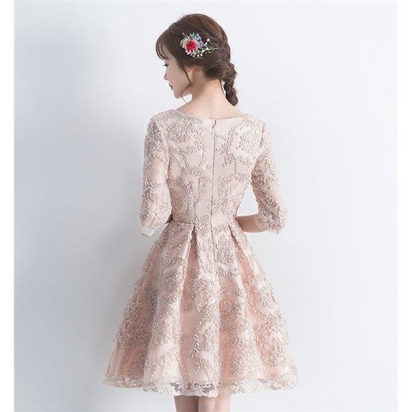 パーティードレス フレアワンピース ミニ 細身 結婚式 お呼ばれ レース 二次会 演奏会 披露宴 エレガント アプリコット 大きいサイズ S〜3L