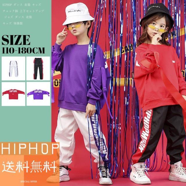 激安 HIPHOP ダンス 衣装 キッズ チェック柄 上下セットアップ 長袖 パンツ 長ズボン ジャズ ダンス 衣装 キッズ 体操服