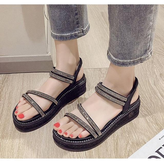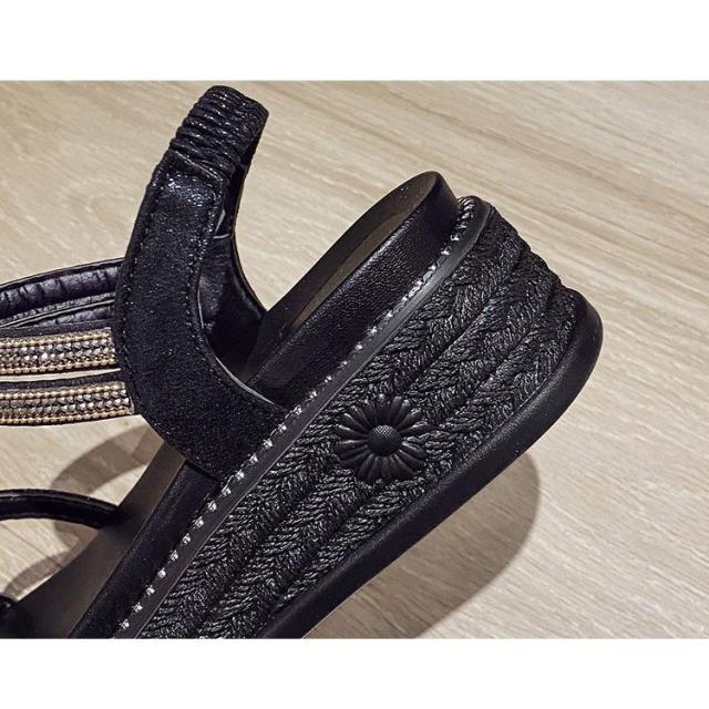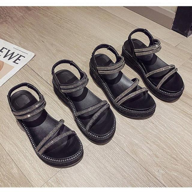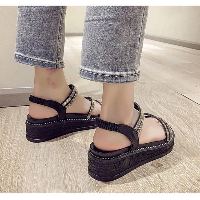 サンダル レディース 履きやすい 夏 サンダル ストラップサンダル 厚底靴 ウェッジソール ローマブール シンプル ぺたんこ 歩きやすい 美脚 大人 新作 2色