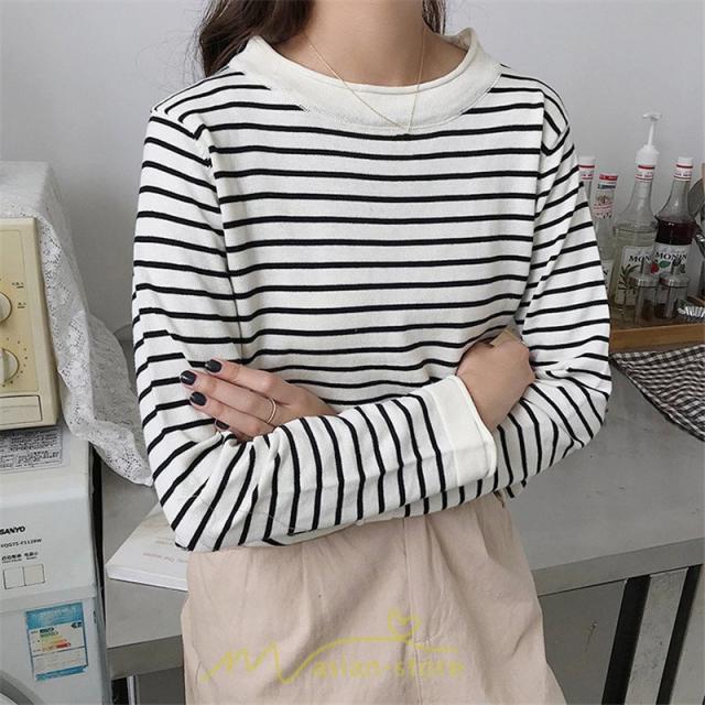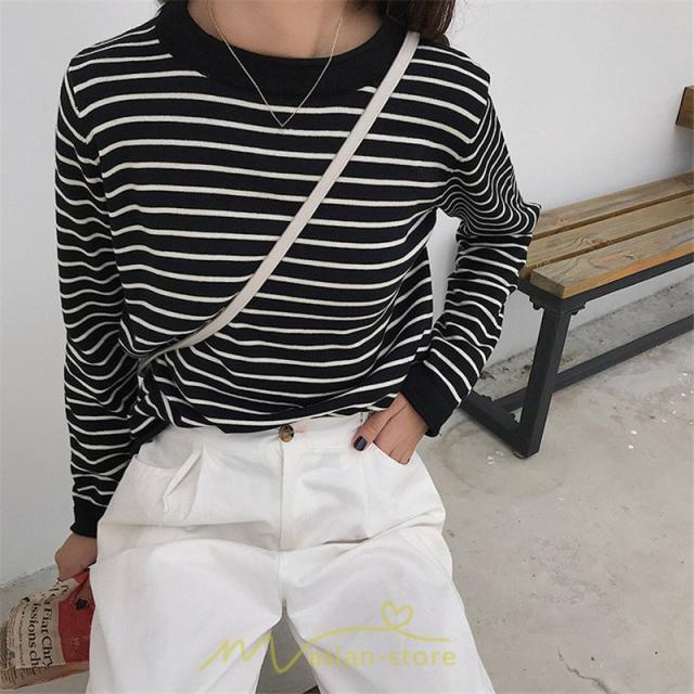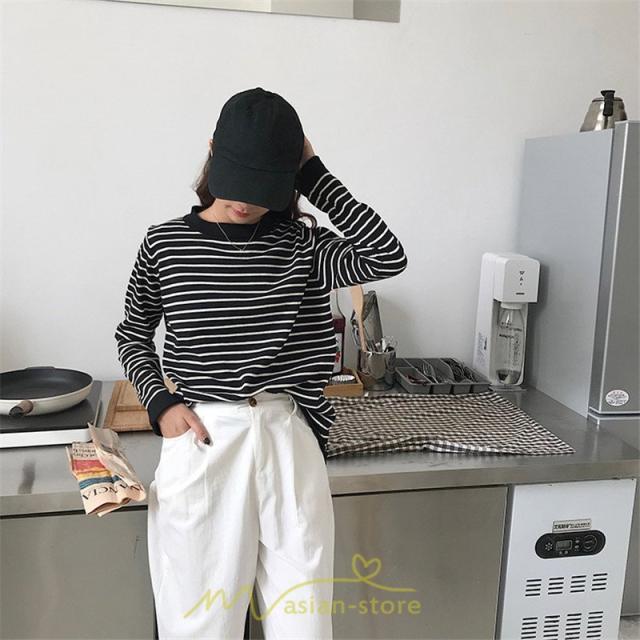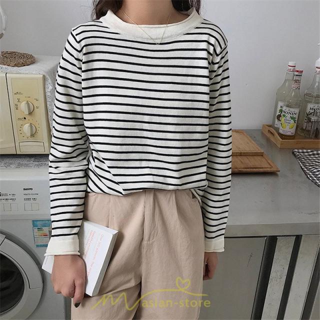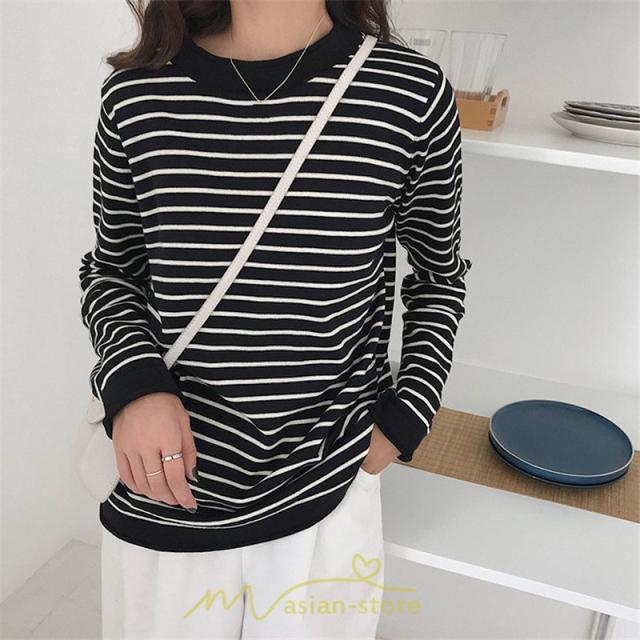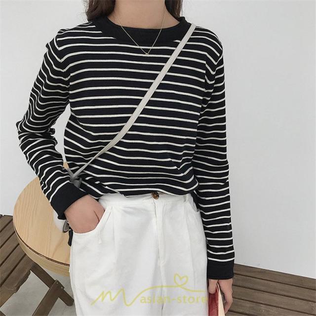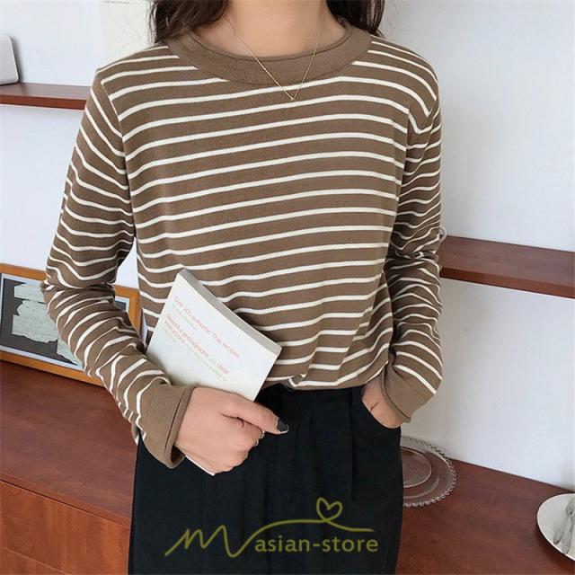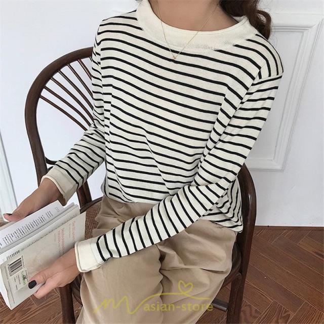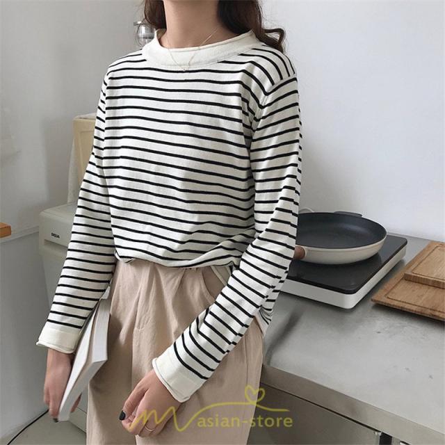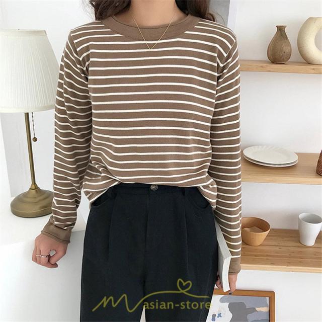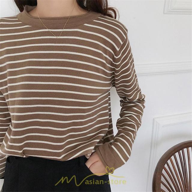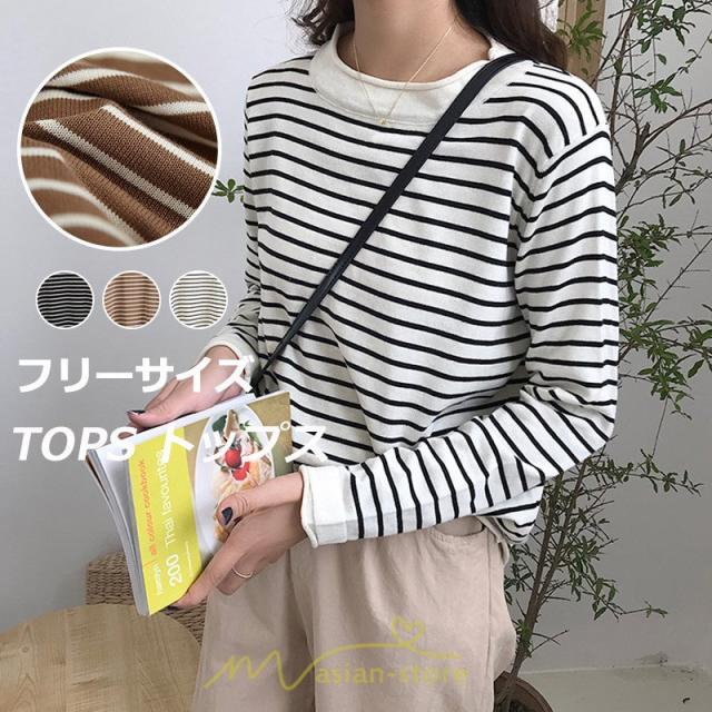 カットソー 丸首 長袖 快適生地 デイリーコーデ 体型カバー スタイリッシュ ボーダー柄 シンプルデザイン 2020秋コーデ レディース オシャレ インナー