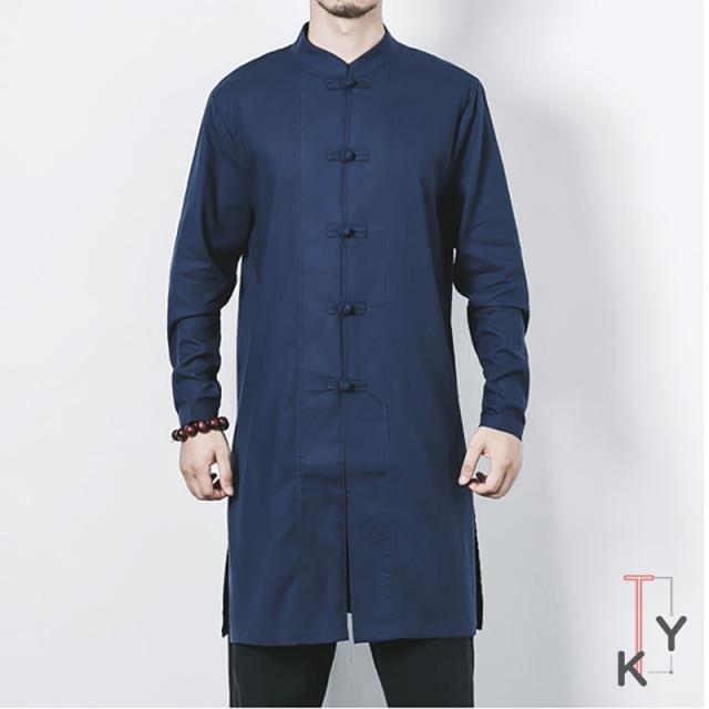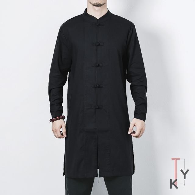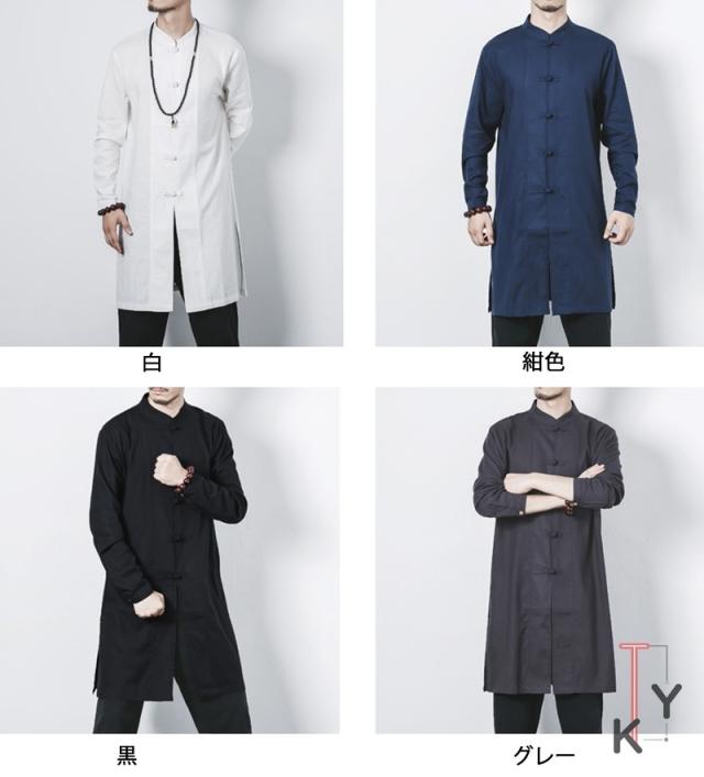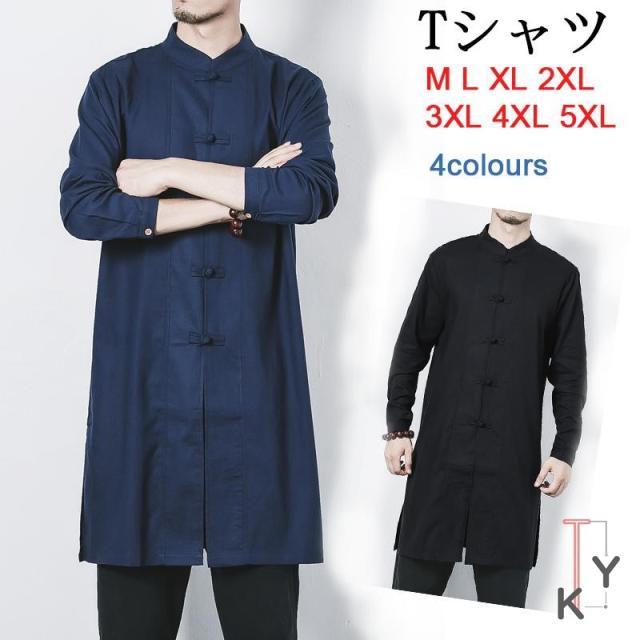 シャツ メンズ トップス 長袖 麻綿混 2019夏新作 中国風 チャイナ風 おしゃれ 紳士
