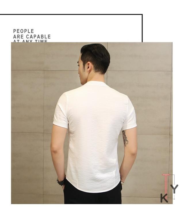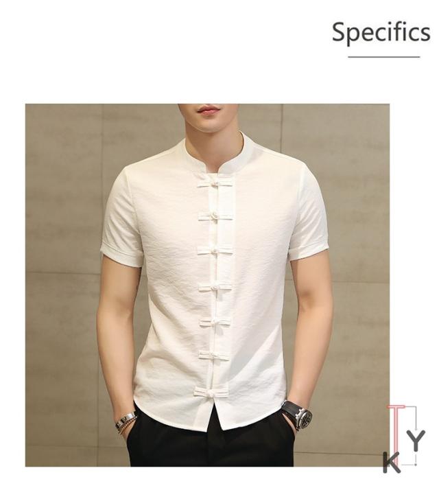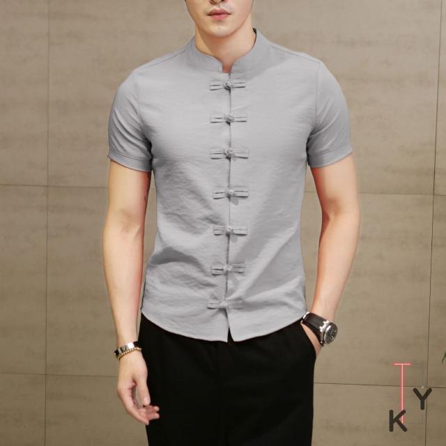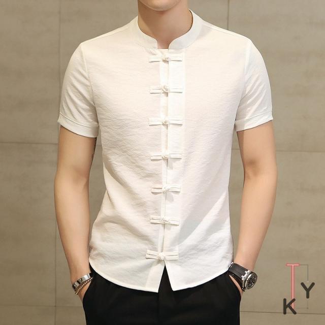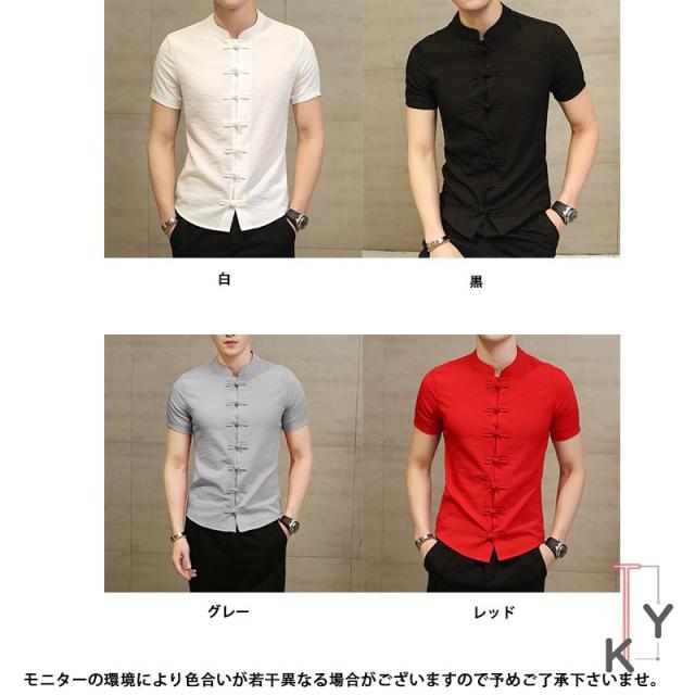 シャツ メンズ トップス 短袖 麻綿混 2019夏新作 中国風 チャイナ風 おしゃれ 紳士