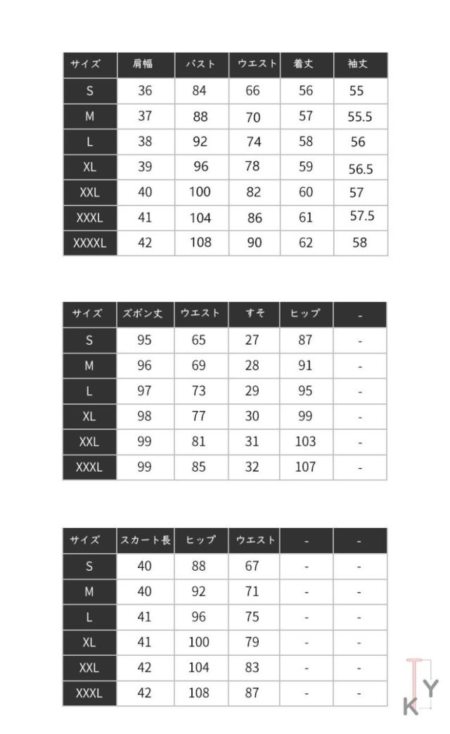 | 色 | 黒(ジャケット*ズボン) 黒(ジャケット*スカート) ブルー(ジャケット*ズボン) ブルー(ジャケット*スカート) |