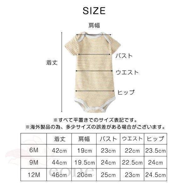 | サイズについての説明 | サイズ 6M:着丈42cm×バスト23cm×肩幅19cm×袖丈8cm 9M:着丈44cm×バスト24cm×肩幅20cm×袖丈8.5cm 12M:着丈46cm×バスト25cm×肩幅21cm×袖丈9cm |
