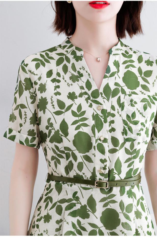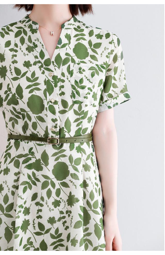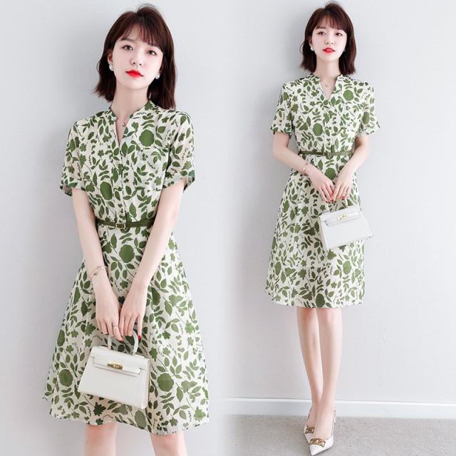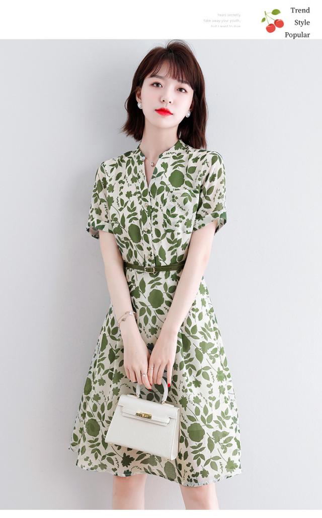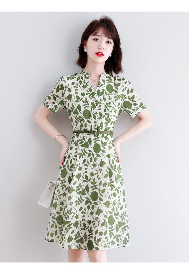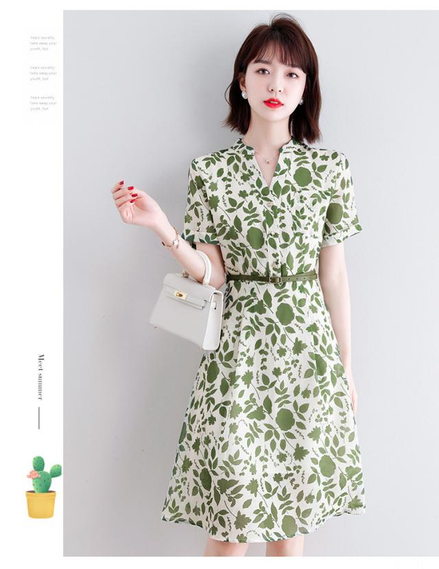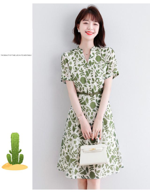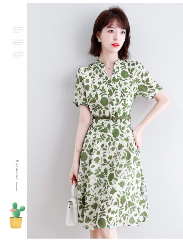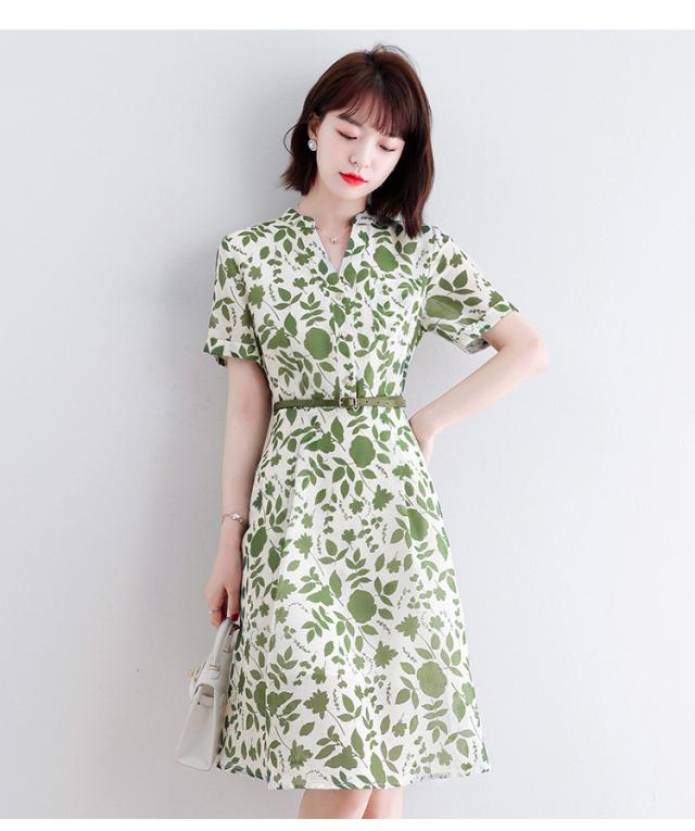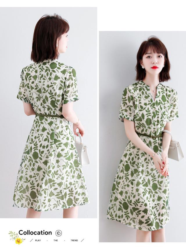 シャツワンピース レディース 40代 きれいめ 膝丈ワンピース 春夏 半袖ワンピース花柄シフォン Vネック Aラインスカート オシャレ 大人上品 お出かけ 通勤OL