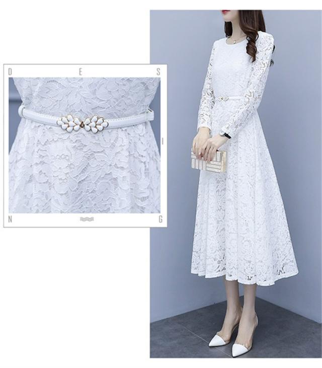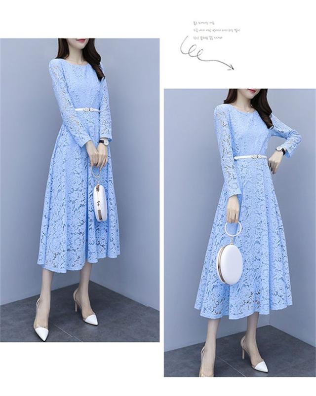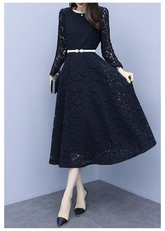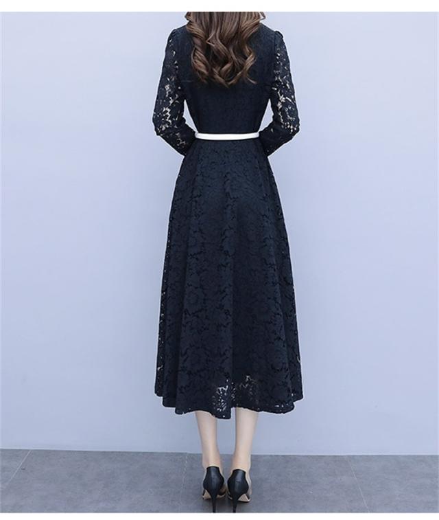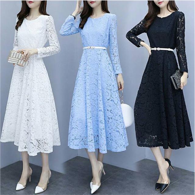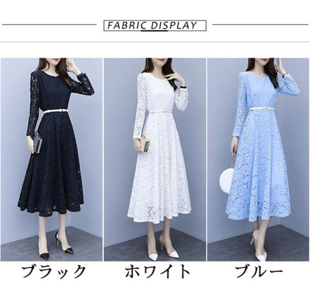 レースワンピース Vネック 袖あり シースルー aライン 大きいサイズ フォーマル ホワイト 白 ブラック 黒 ライトブルー