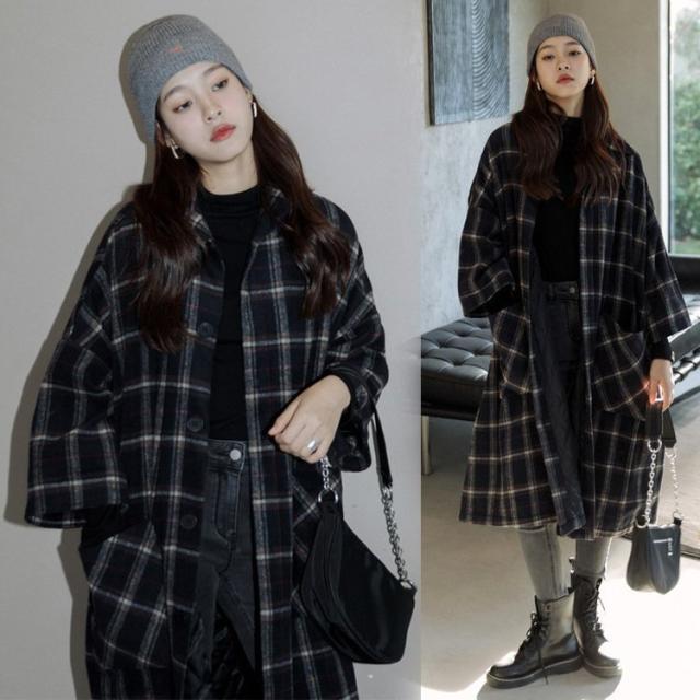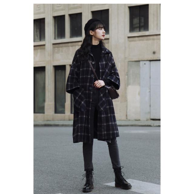 チェスターコート レディース 秋冬 40代 チェスターコート マント チェック柄コート ロング丈 ラシャコートひざ下オーバー ゆったりアウター 着痩せ オシャレ