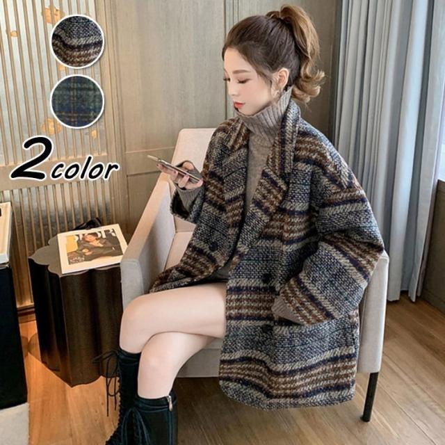 チェスターコート レディース 秋冬 40代 チェック柄 チェスターコート ミディアム丈 ツイードコート 厚手 スーツオーバー 韓国風アウター 通勤 着痩せ オシャレ