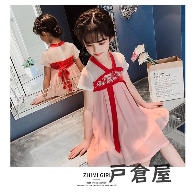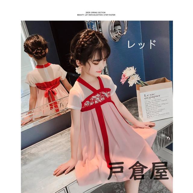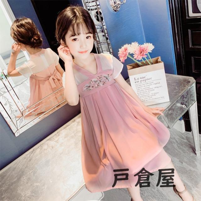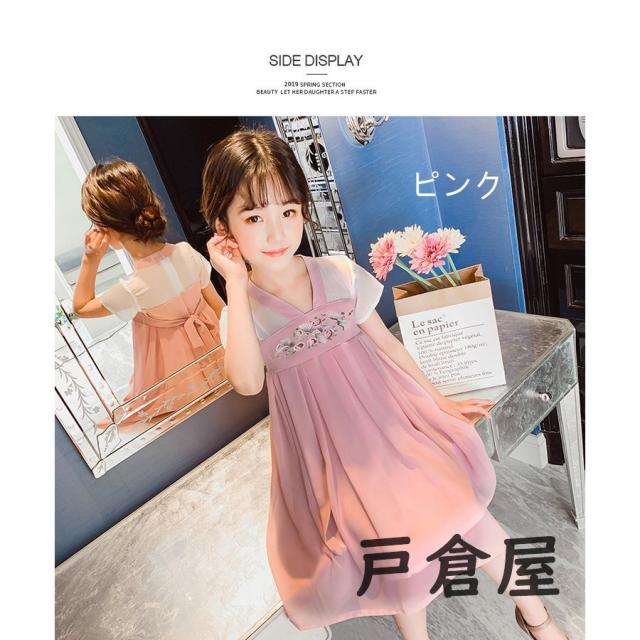 子供服 ワンピース キッズ 女の子 夏 膝丈刺繍柄 中国風ワンピース おしゃれ 韓国子ども服 ベビー服 女児 カジュアル 人気可愛い 普段着 新品