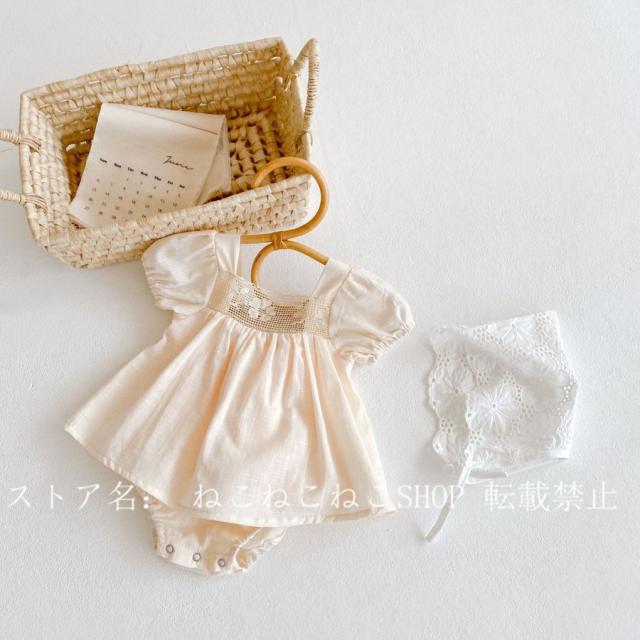 半袖 パフスリーブ ワンピース スクエアネック 女の子 韓国子供服 ドレス ベビー服 赤ちゃん 可愛い 新生児 出産祝い お宮参り 七五三 結婚式 ピアノ発表会
