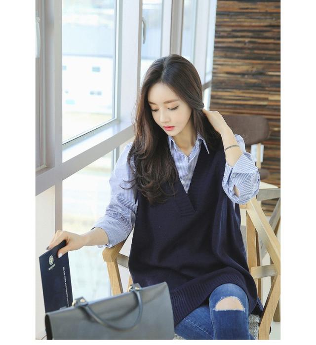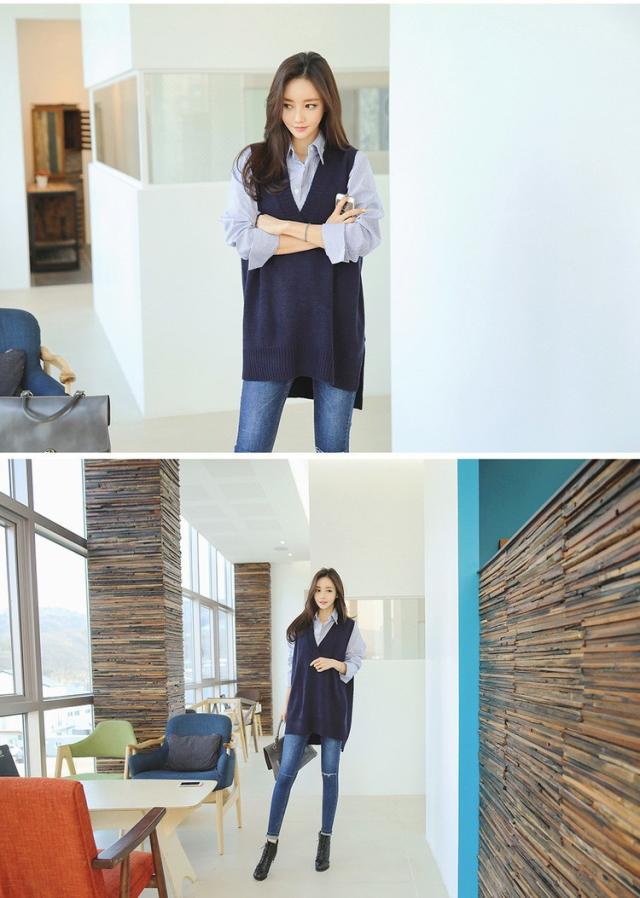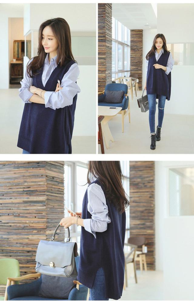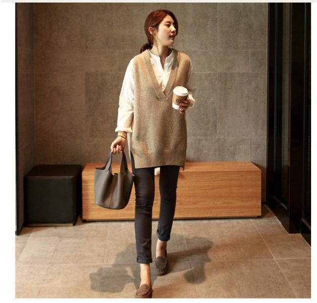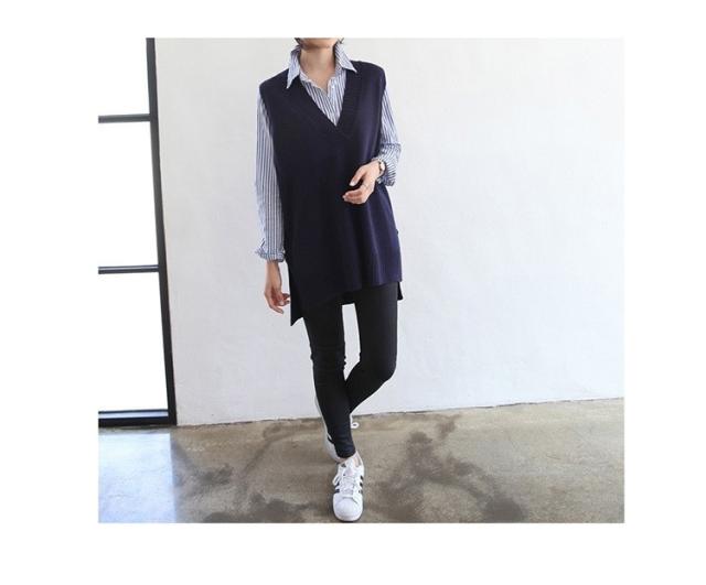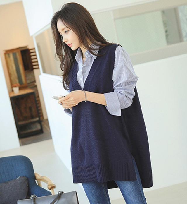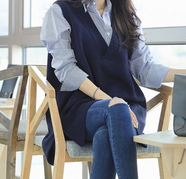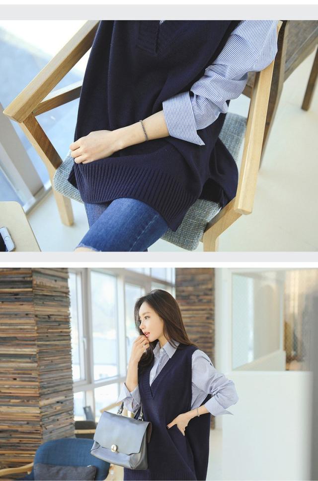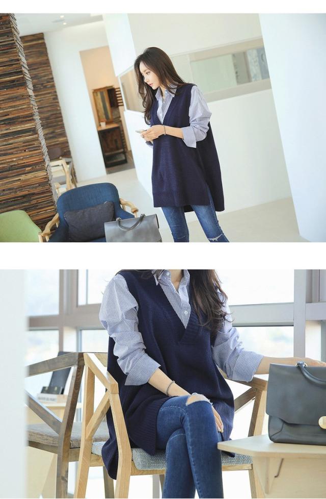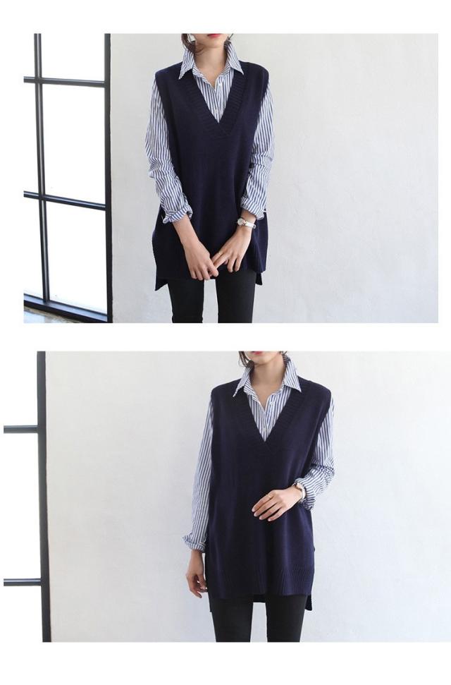 ニットベスト レディース 40代 秋冬 vネックベストセーター 無地 ミディアム丈 上品 ノースリープニットベスト セーター韓国風 体型カバー 通勤 着痩せ 3色