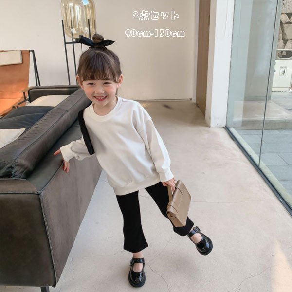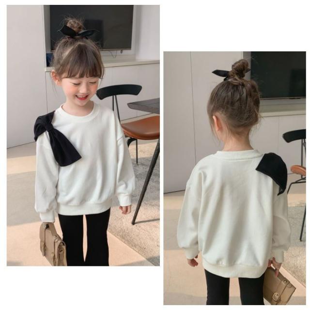 子ども服 女の子 セットアップ オシャレ 上下セット 幼児 キッズ 春秋 2点セット 長袖 スウェット トレーナー 蝶結び 丸首 ブーツカットパンツ お出かけ 90-130