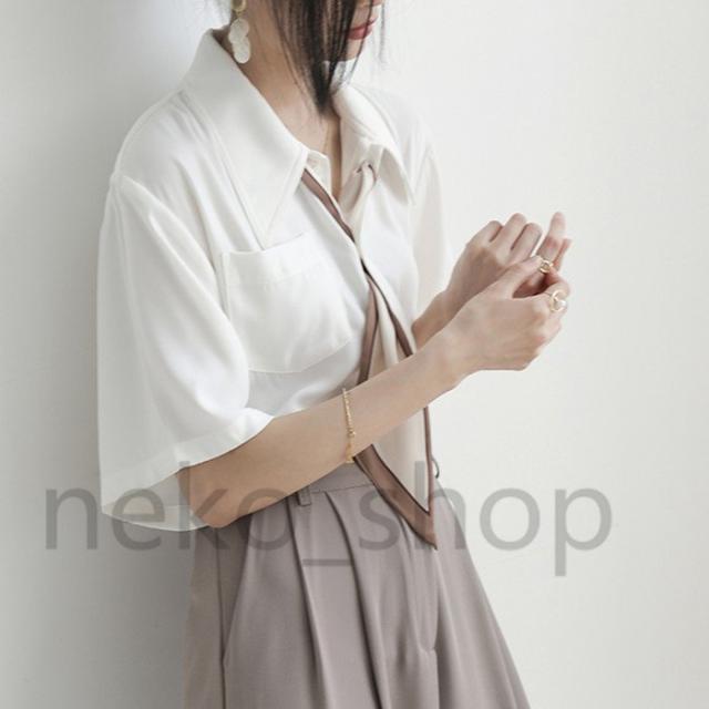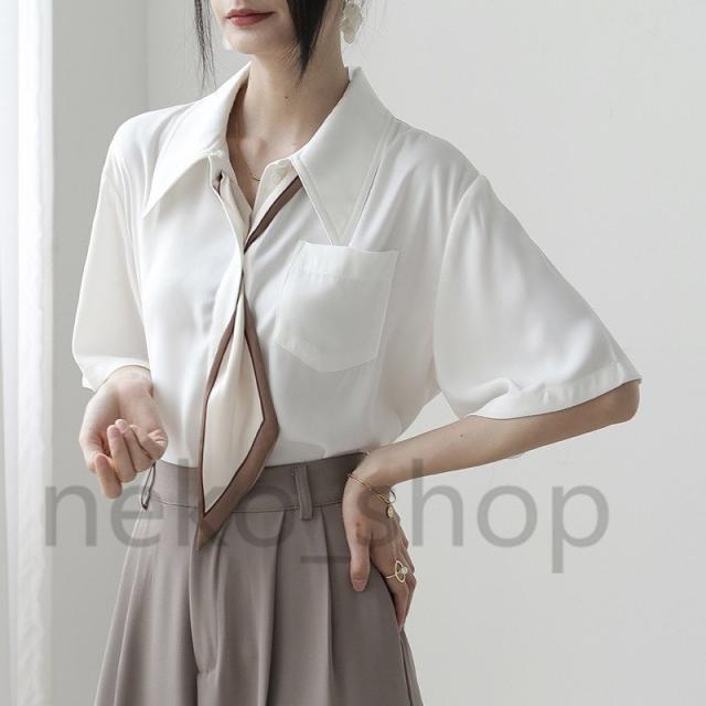 ワイシャツ レディース Vネック リボンネック シフォンブラウス シャツ とろみシャツ ホワイトシャツ ゆったり 着痩せ トップス 通勤OL オフィス コーデ 春夏