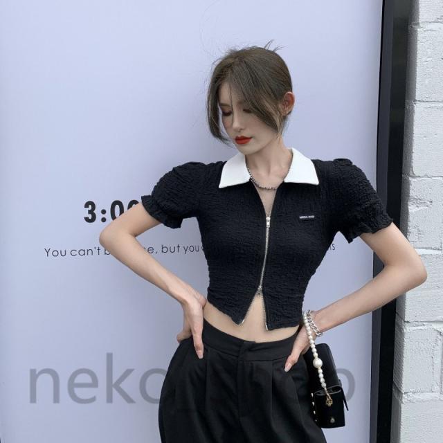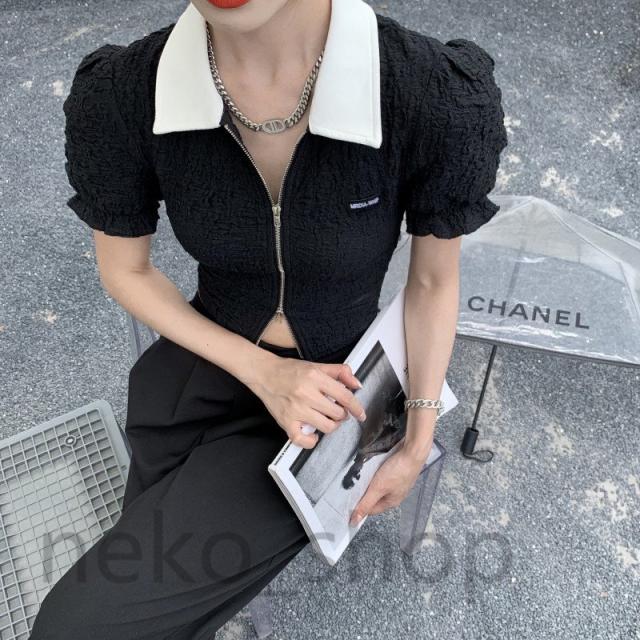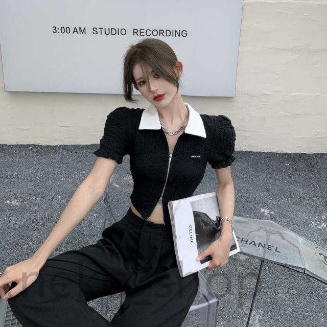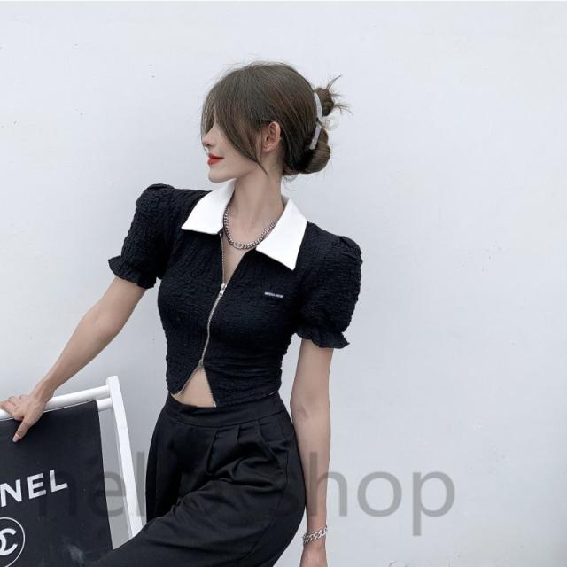 ブラウス シャツ レディース 春夏 ベルスリーブ ショート丈 へそ出し とろみシャツ トップス タイト 無地 シンプル 着痩せ 上品 韓国風 通勤 デート セクシー