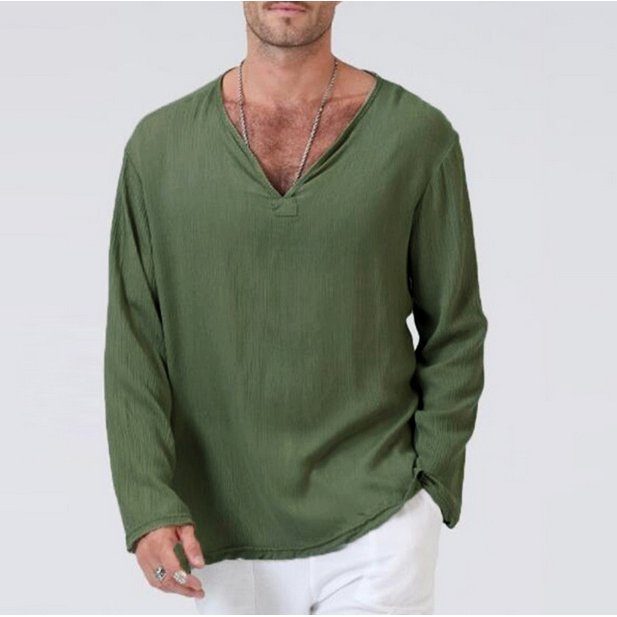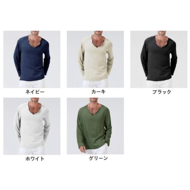 tシャツ 亜麻シャツ メンズ カジュアルシャツ 無地 長袖 ゆったり Vネック メンズファッション 30代 40代 50代 トップス おしゃれ