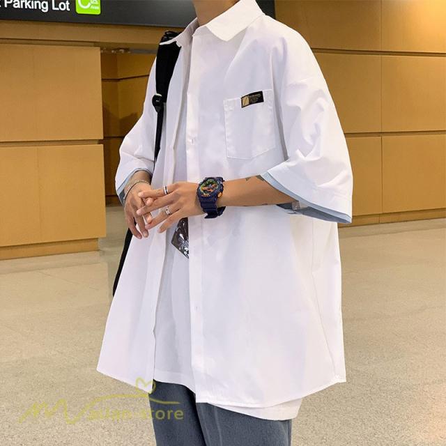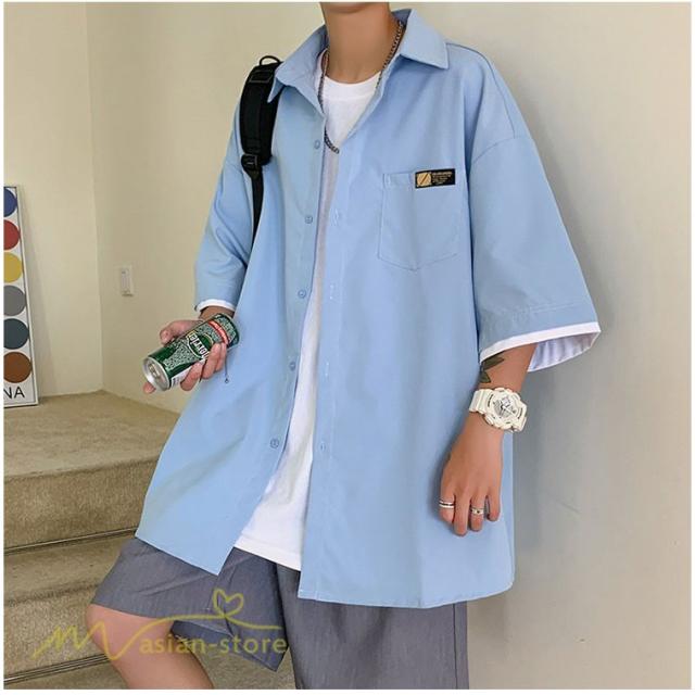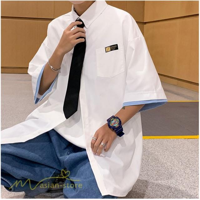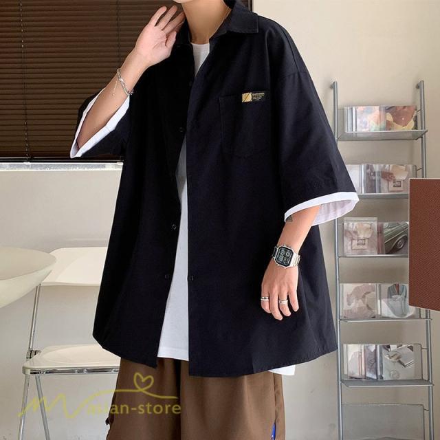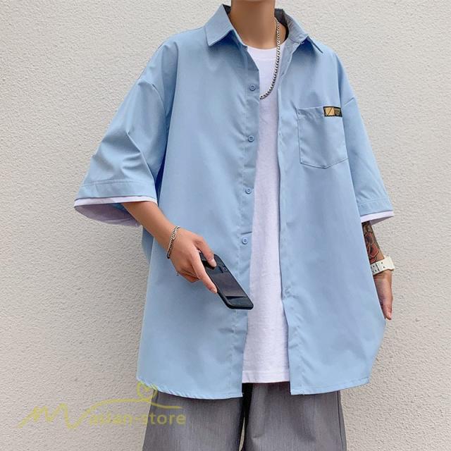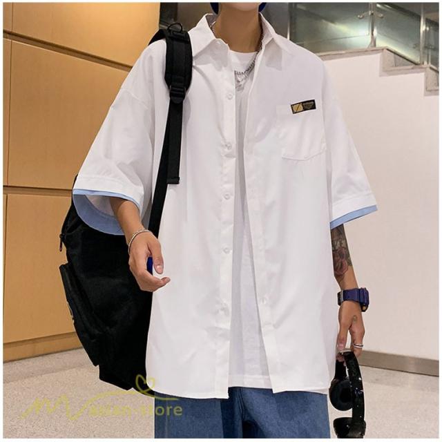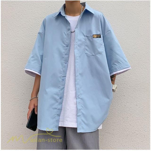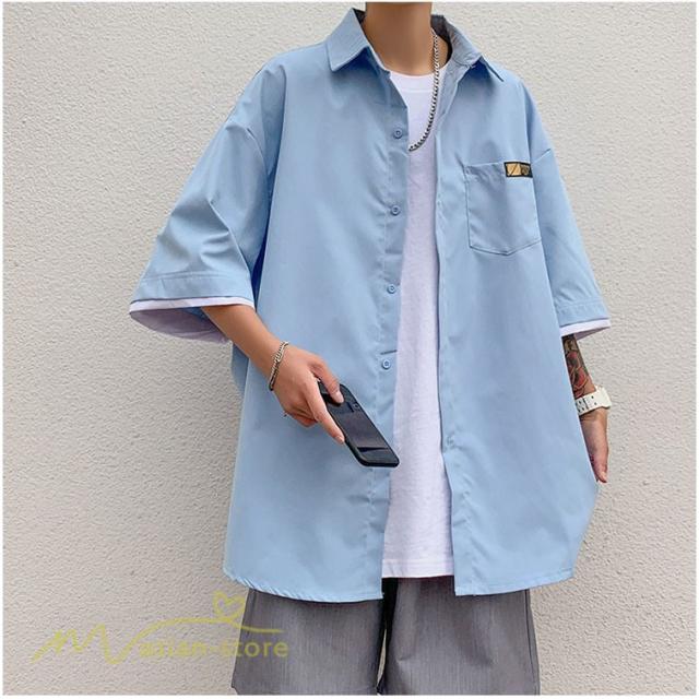 シャツ ワイドシャツ メンズ トップス レイヤード風 重ね着 大きいサイズ 5分袖 メンズシャツ カジュアル ライトアウター カッコウイイ 日常感 夏服