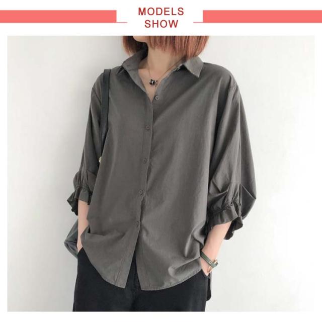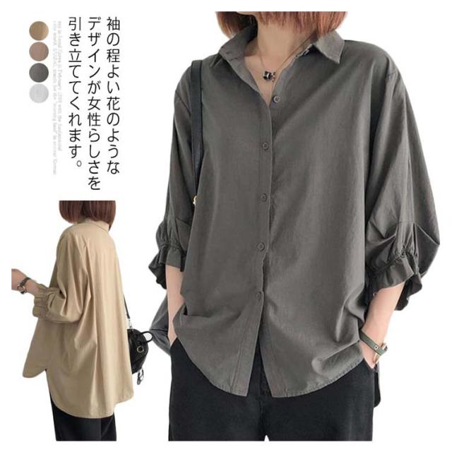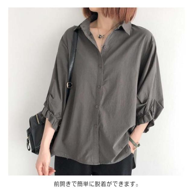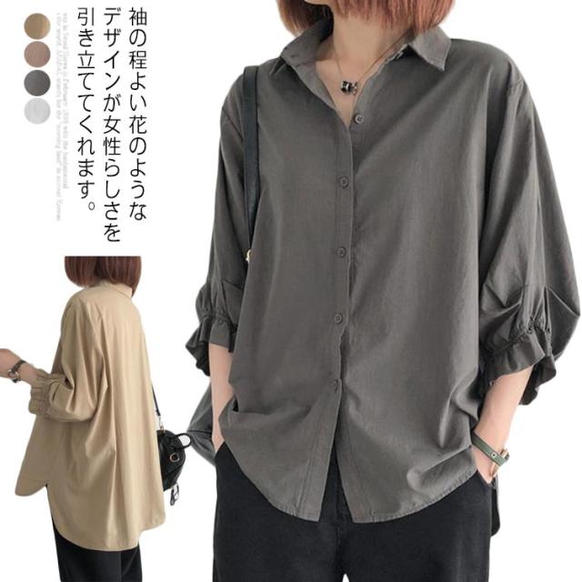 送料無料 全4色×6サイズ ドルマンスリーブ シャツ ブラウス 半袖 七分袖 7分 レディース 綿 コットン トップス スカラップ 春 夏 秋 シンプル 無地 オフィス 通勤 かわいい おしゃれ 30代 40代