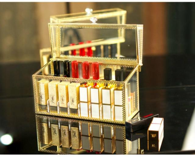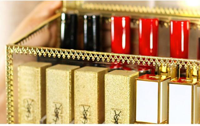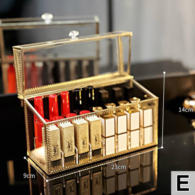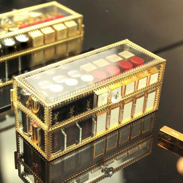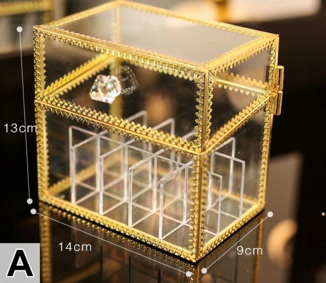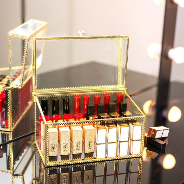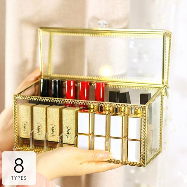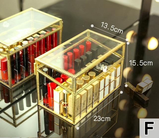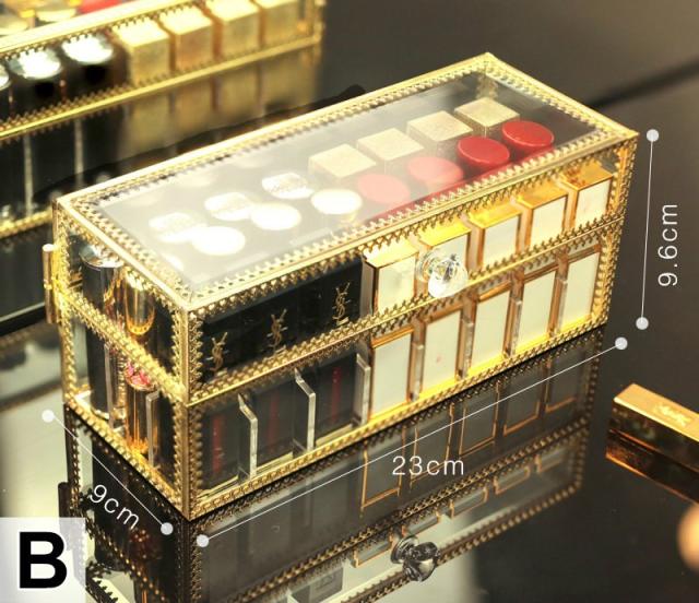 メイクボックス 化粧品 箱 リップ収納 口紅収納 収納 ドレッサー お手入れ 可愛い 便利 小物 クリア ゴールドオシャレ ケア /
