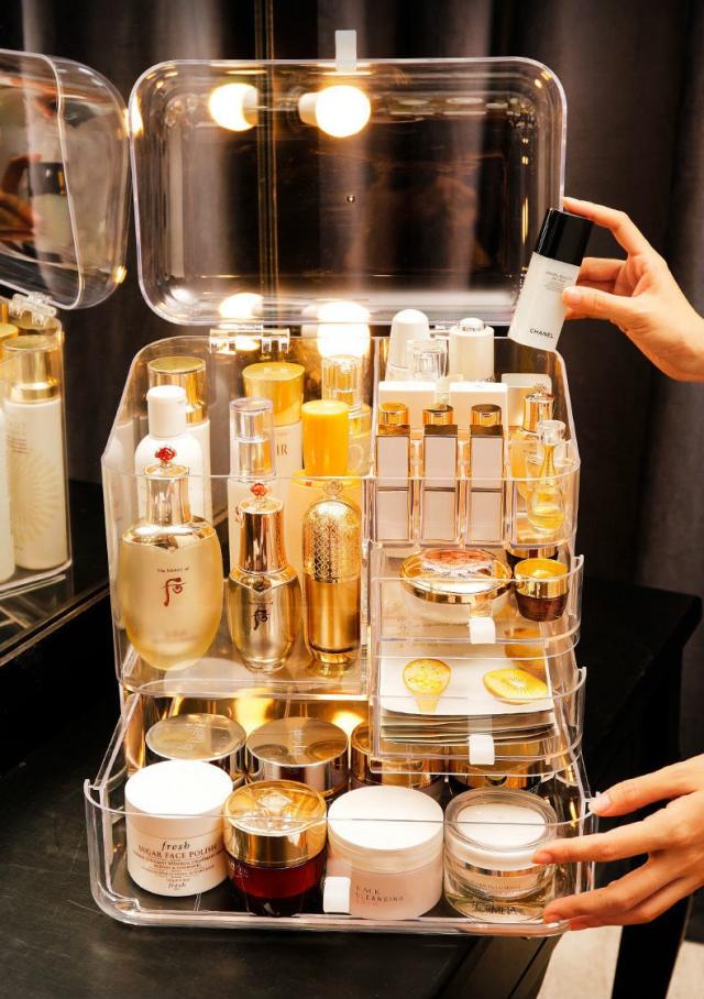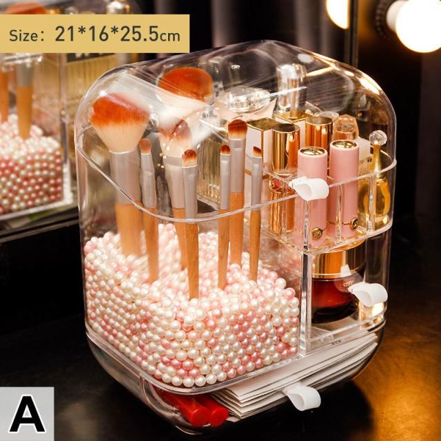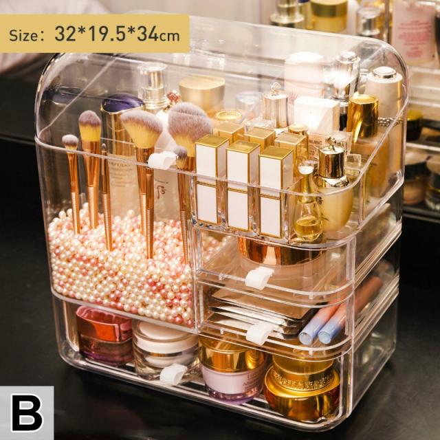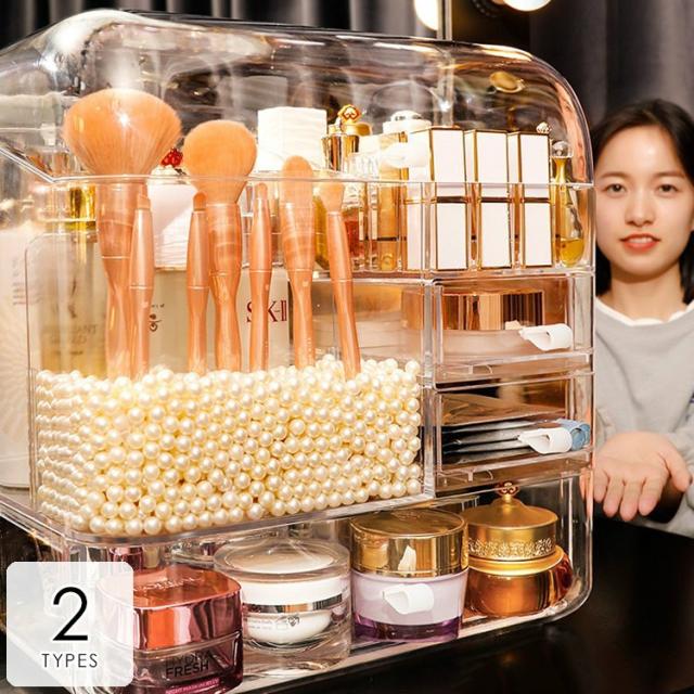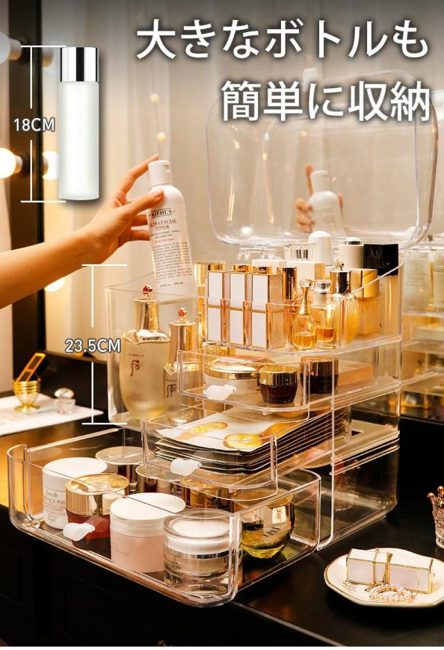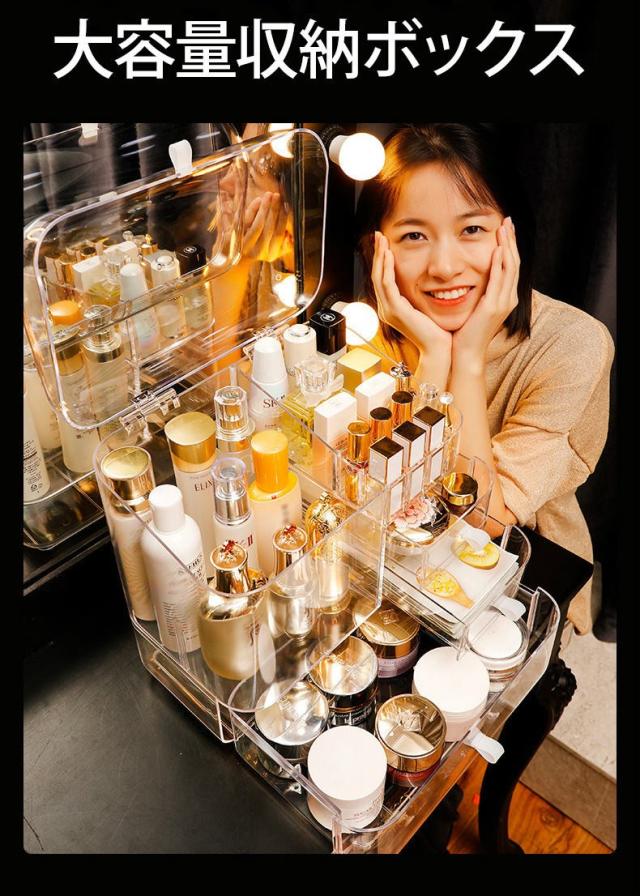 メイクボックス 化粧品 箱 収納 ドレッサー お手入れ 可愛い 引き出し ドーム型 クリア 持ち運び 便利 二段 クリア楽しい