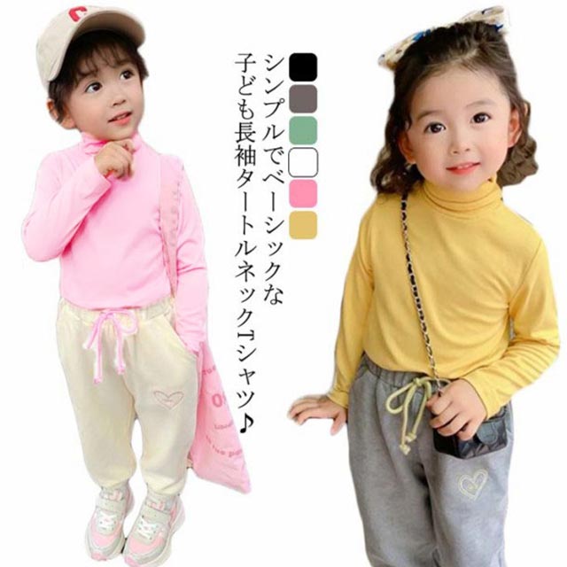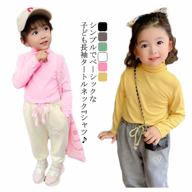 Tシャツ ハイネック タートルネック キッズ 長袖 tシャツ 子供服 カットソー 女の子 子ども プルオーバー トップス インナーtシャツ 重ね着 レイヤード 無地 ガールズ 送料無料 春秋