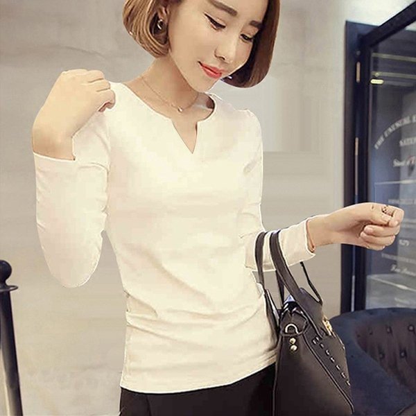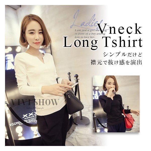 レディース トップス カットソー シンプル 長袖 上品 シンプル スリム tシャツ vネック