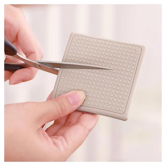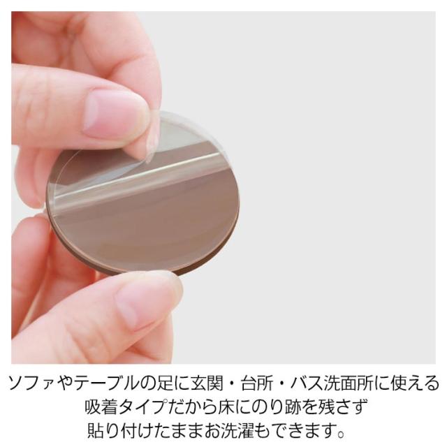 | シンプルな色で目立ちにくい、貼るだけの簡単なすべり止め。 ソファやテーブルの足に玄関・台所・バス洗面所に使える、 吸着タイプだから床にのり跡を残さず、貼り付けたままお洗濯もできます。 マット全体は滑り止め性能の高いシリコン素材で、それに裏面の凹凸がついているので、優秀な滑り止め効果が実現! | |