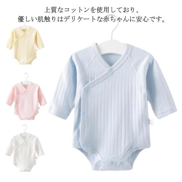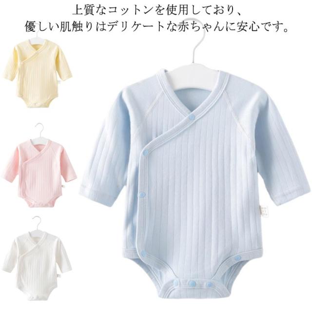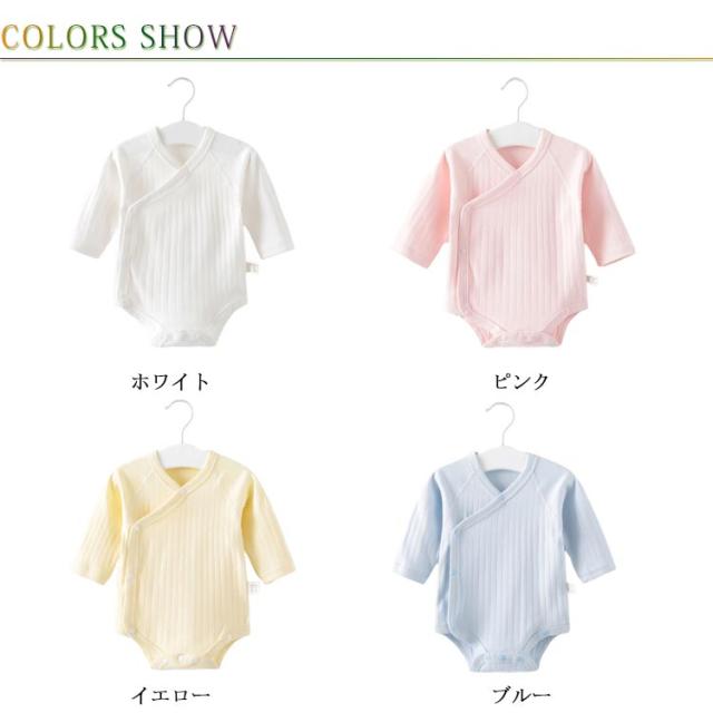 【送料無料】綿100% 40cm 50cm 60cm 70cm男の子 女の子 男女兼用 ユニセックス 長袖 綿100% 白 ホワイト ブルー ピンク イエロー 退院 服 お宮参り 出産準備 出産祝い 夏生まれ 夏用
