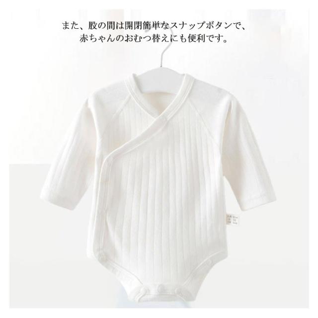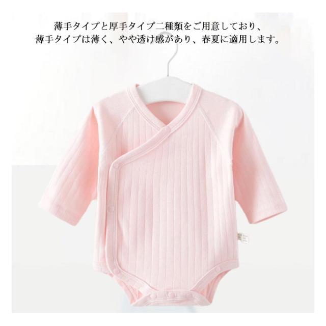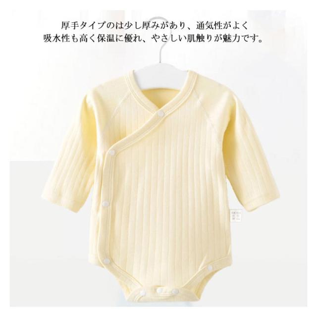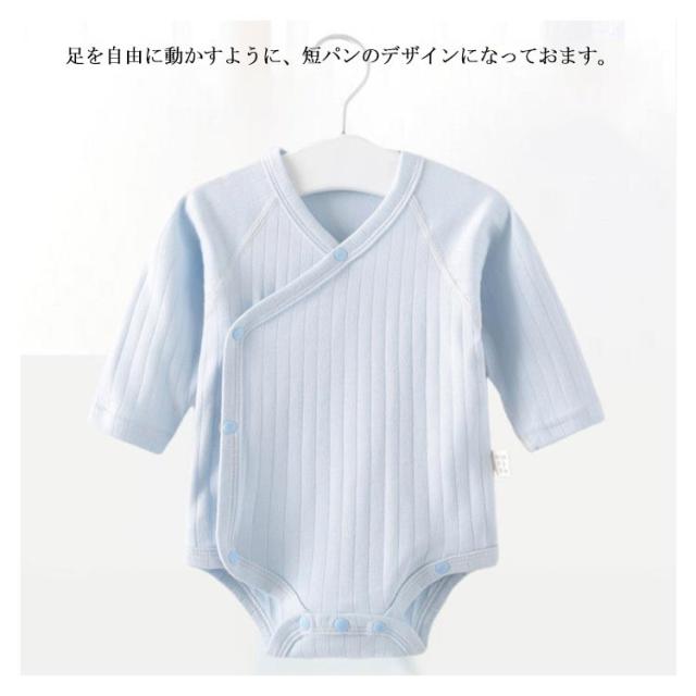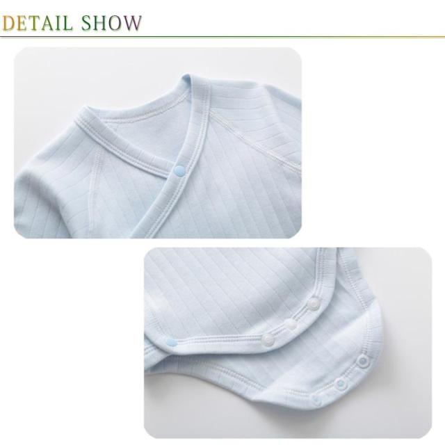 | 上質なコットンを使用しており、優しい肌触りはデリケートな赤ちゃんに安心です。 足を自由に動かすように、短パンのデザインになっておます。 また、股の間は開閉簡単なスナップボタンで、赤ちゃんのおむつ替えにも便利です。 薄手タイプと厚手タイプ二種類をご用意しており、薄手タイプは薄く、やや透け感があり、春夏に適用します。 厚手タイプのは少し厚みがあり、通気性がよく吸水性も高く保温に優れ、やさしい肌触りが魅力です。 | |