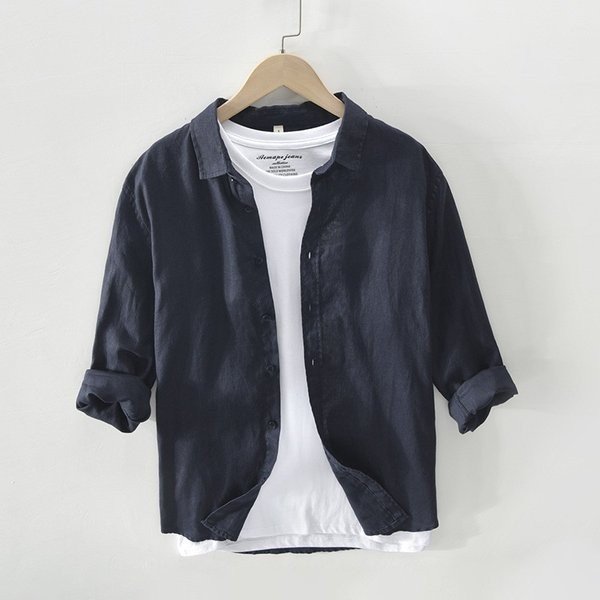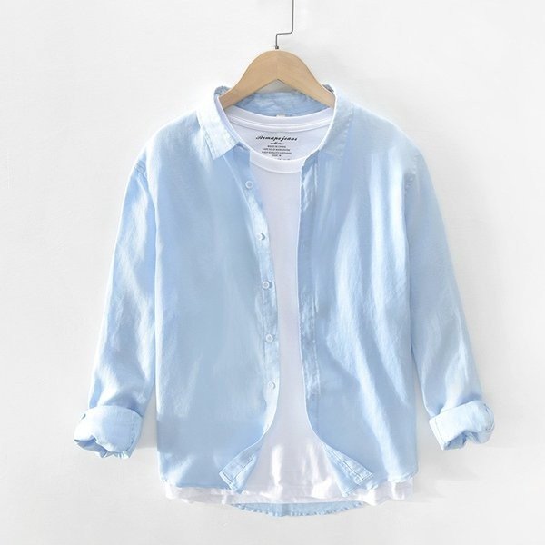 シャツ 長袖 メンズ 綿麻シャツ カジュアルシャツ ワイシャツ 無地 アメカジ ロールアップ 通勤 通学 お出かけ 春夏秋物