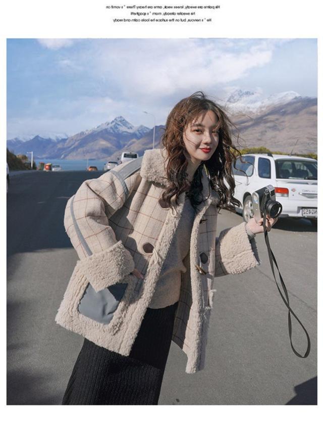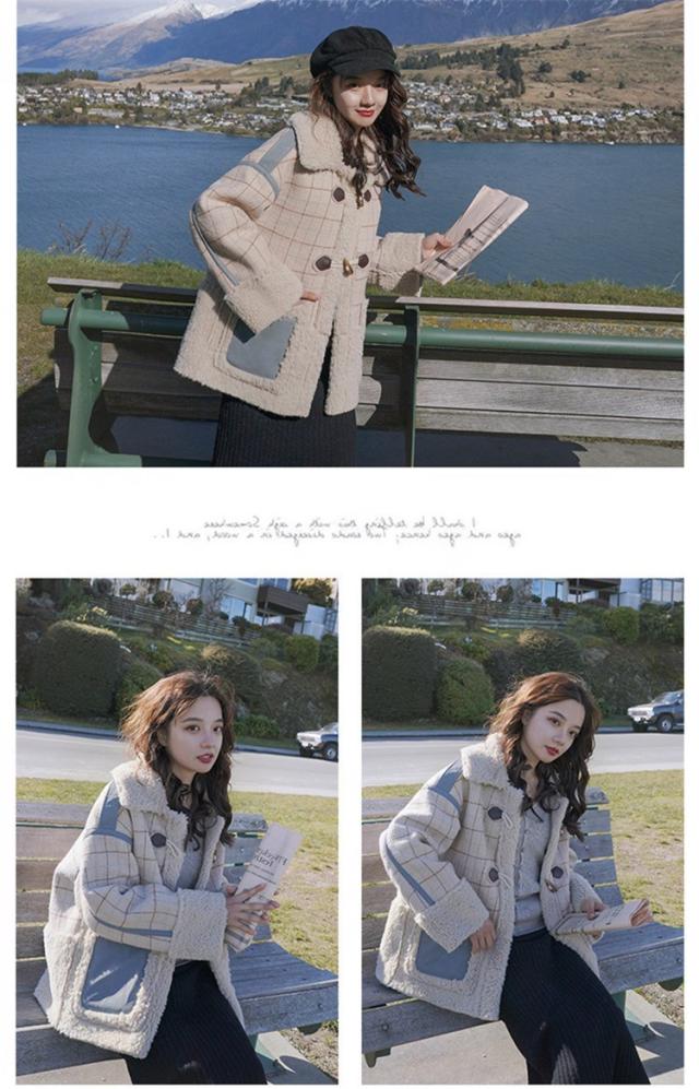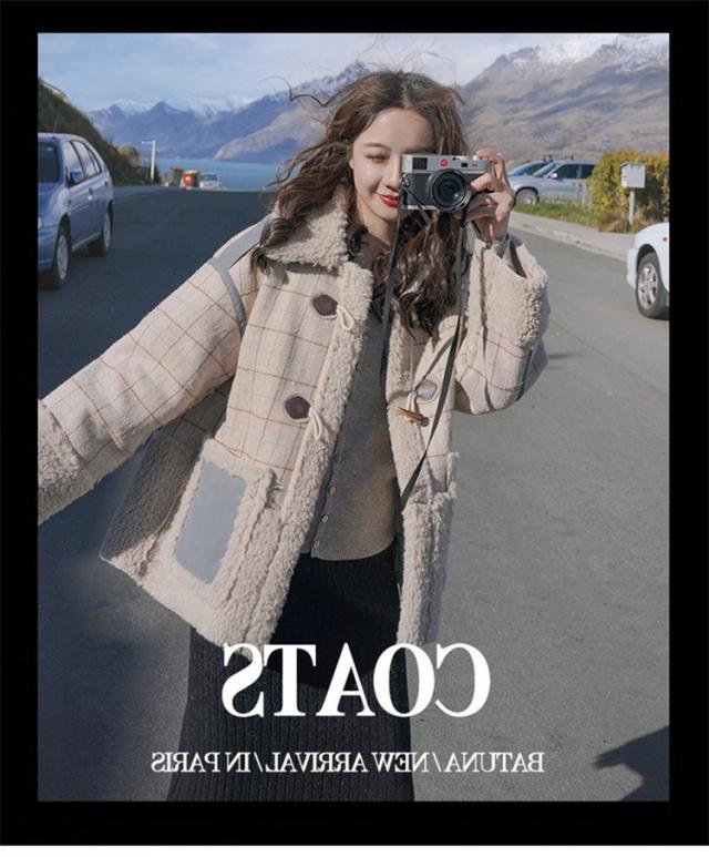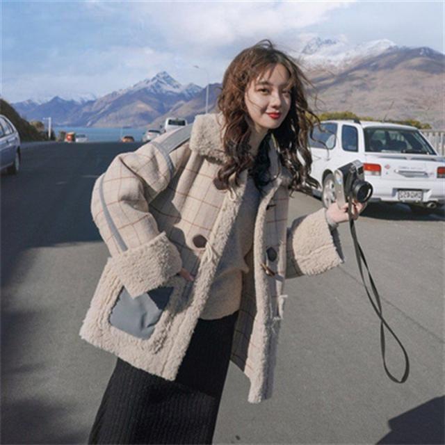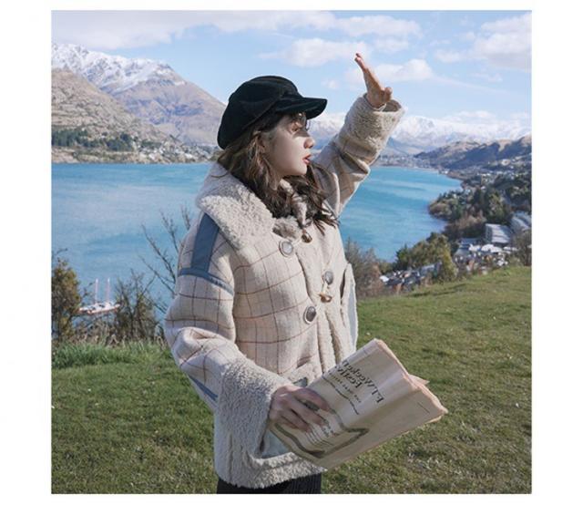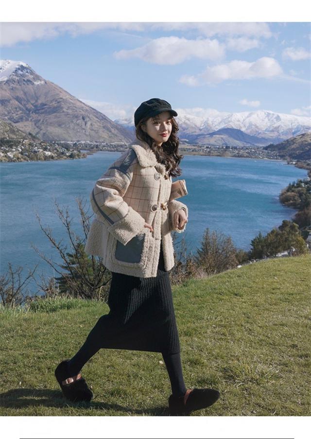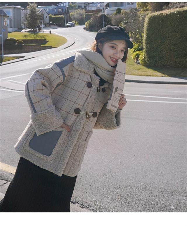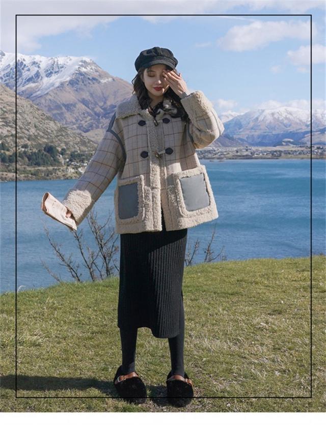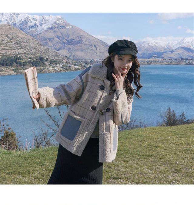 ラシャコート レディース ダブルブレスト 毛皮 牛角 ラム毛 厚手 ラシャジャケット ロング丈秋冬 チェック柄 カジュアル スプリングコート 着痩せ アウター