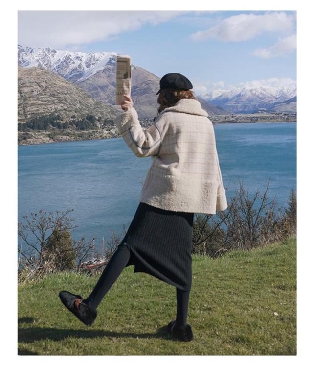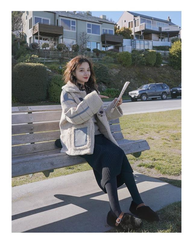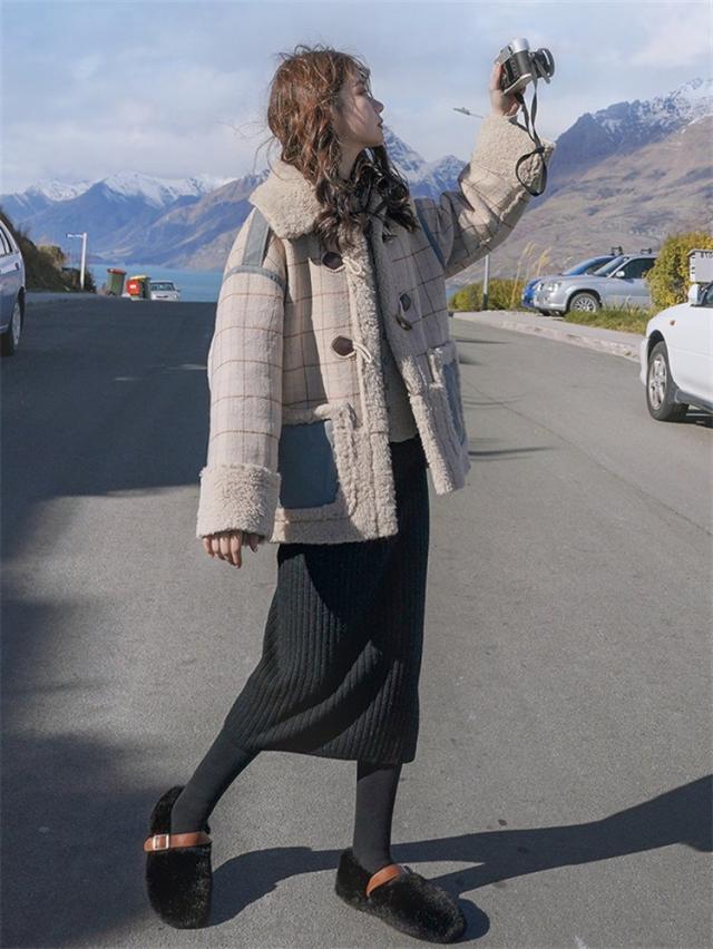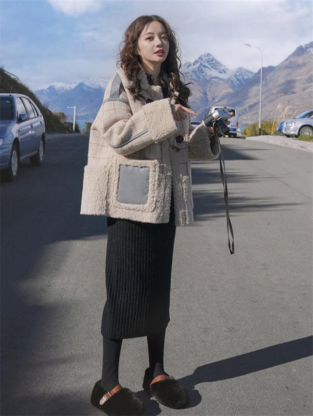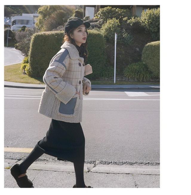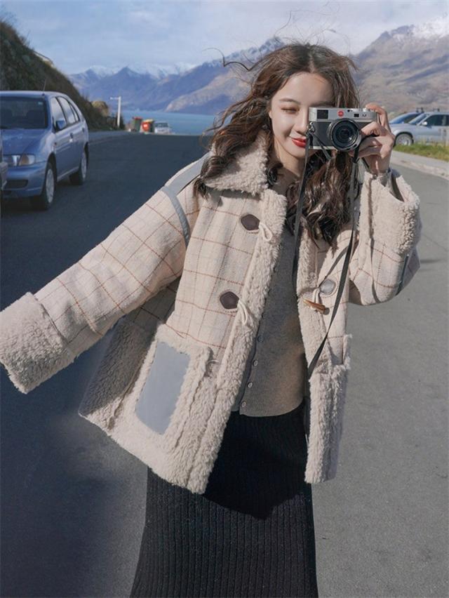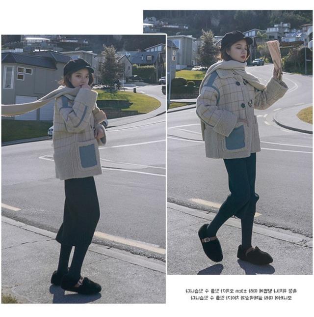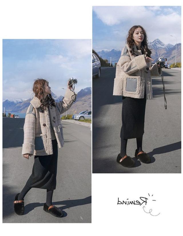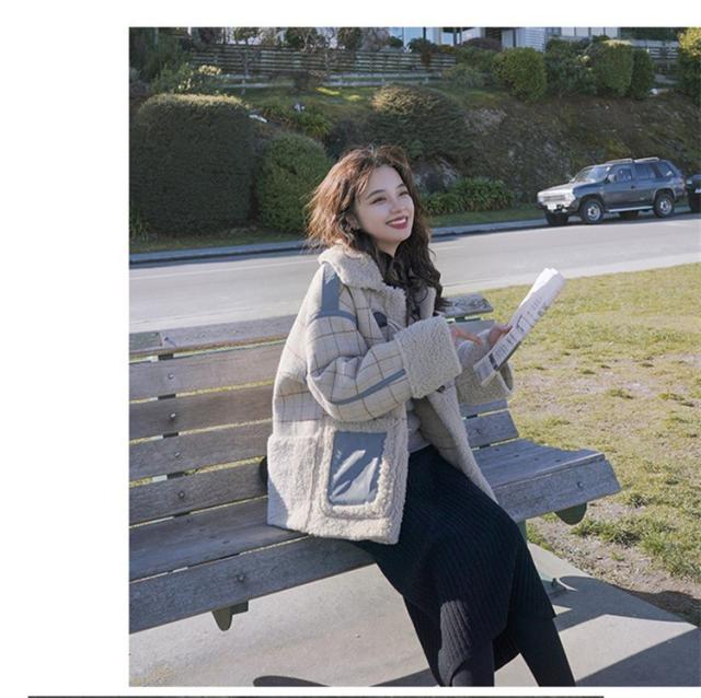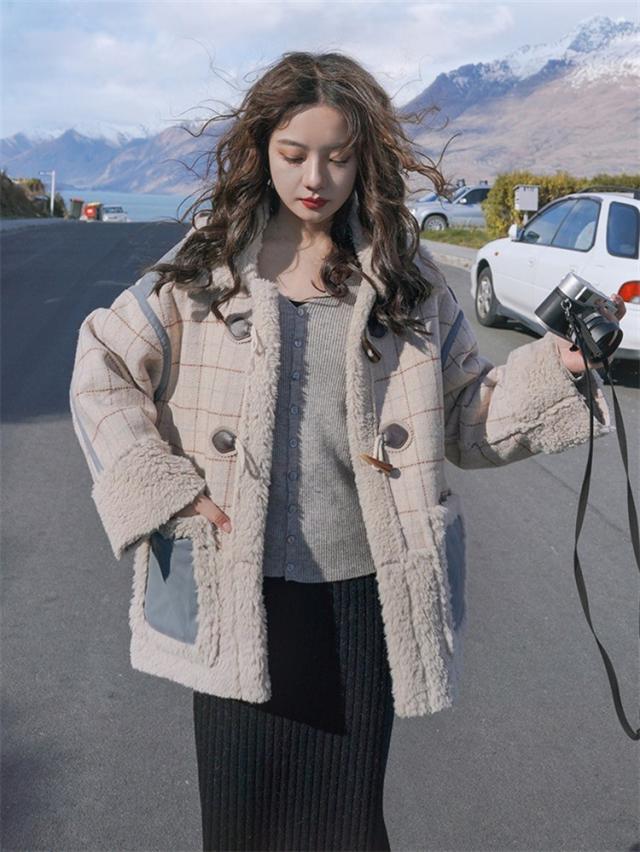 ラシャコート レディース ダブルブレスト 毛皮 牛角 ラム毛 厚手 ラシャジャケット ロング丈秋冬 チェック柄 カジュアル スプリングコート 着痩せ アウター