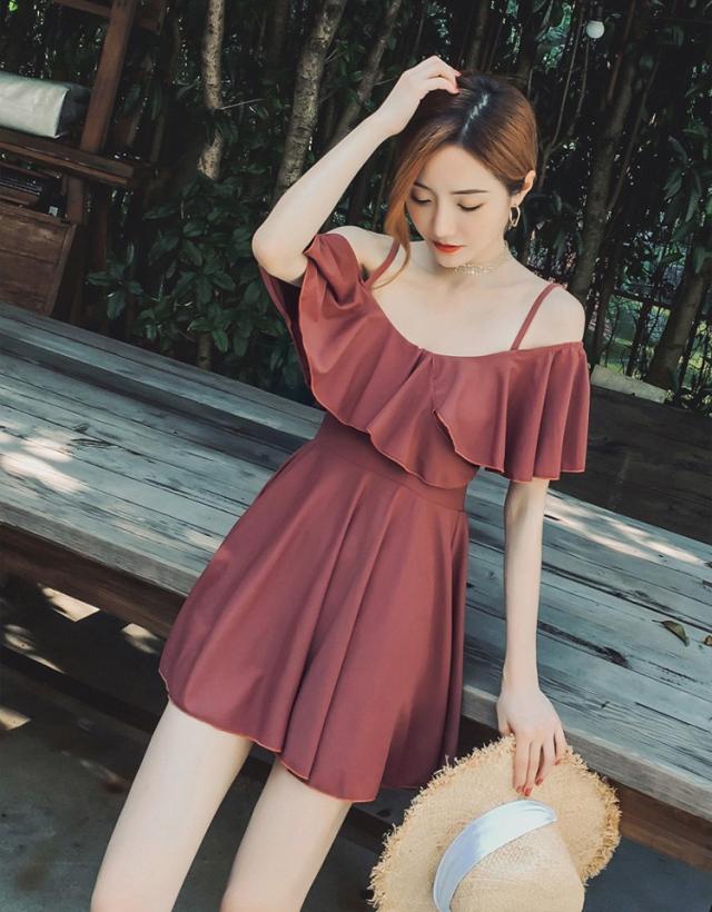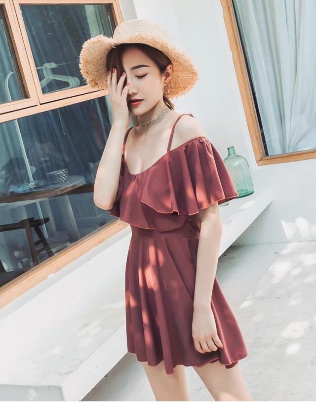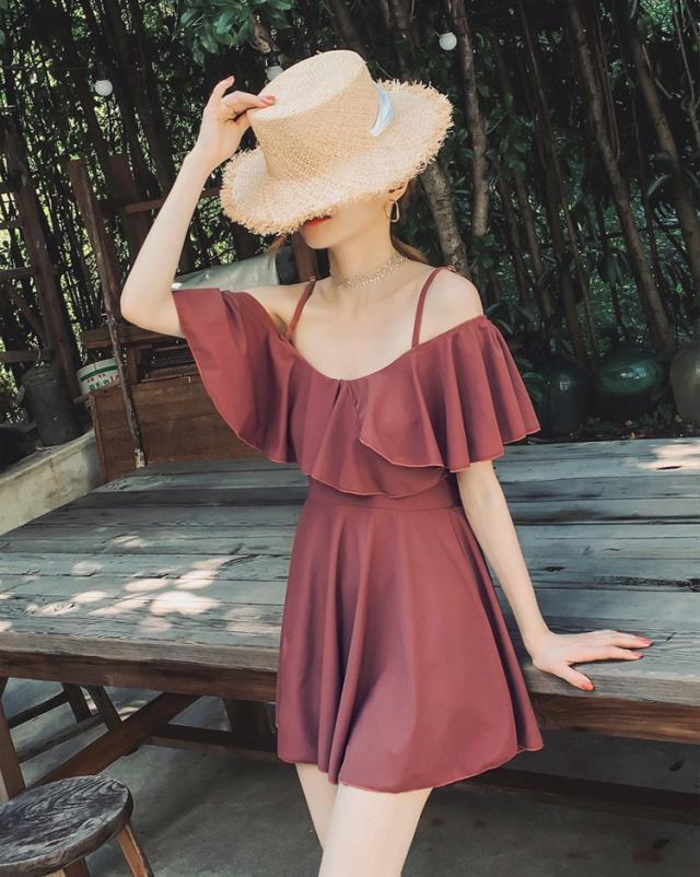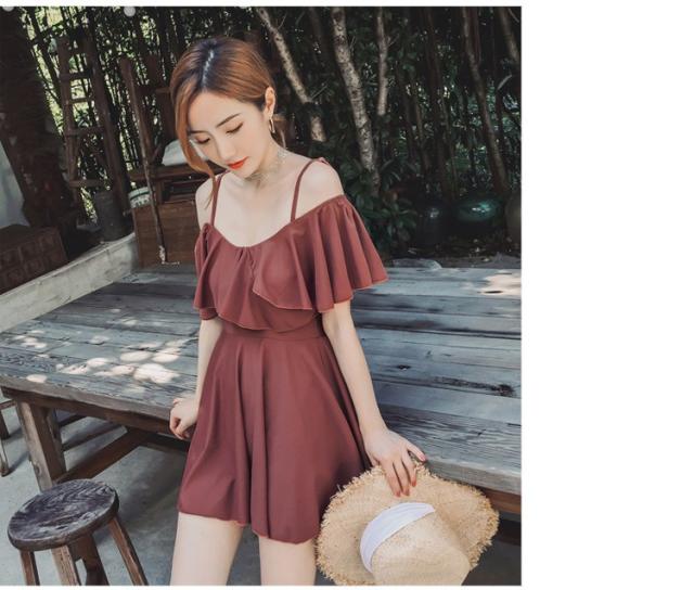 水着レディース 体型カバー 水着 ワンピース型 ショートパンツセパレート 水着 ボールドネック 小胸バンドゥ 水着 韓国風 40代 大人 スイムウェア 温泉 ママ水着