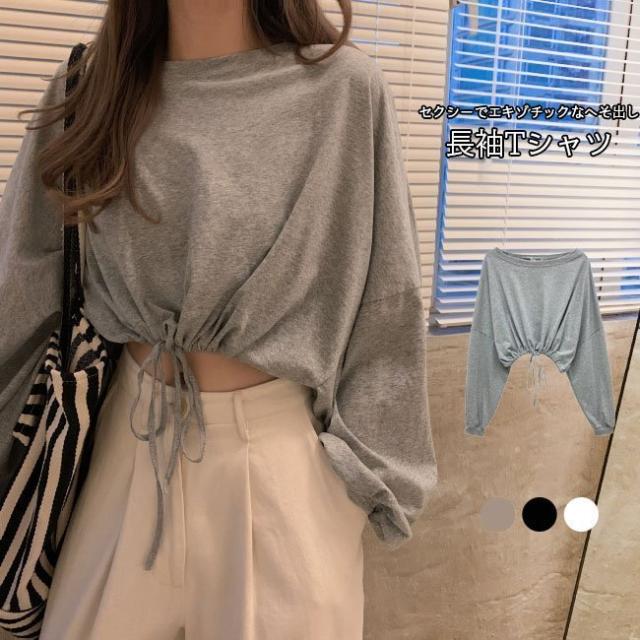 Tシャツ へそ出し レディース 長袖Tシャツ ショート丈 ヘソ出しTシャツ カットソー ゆったり 無地 へそ出しトップス ヨガ ダンスウェア レトロ