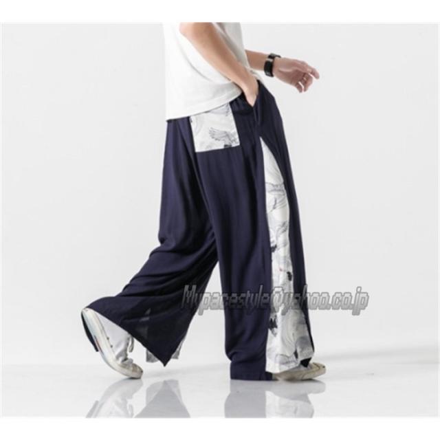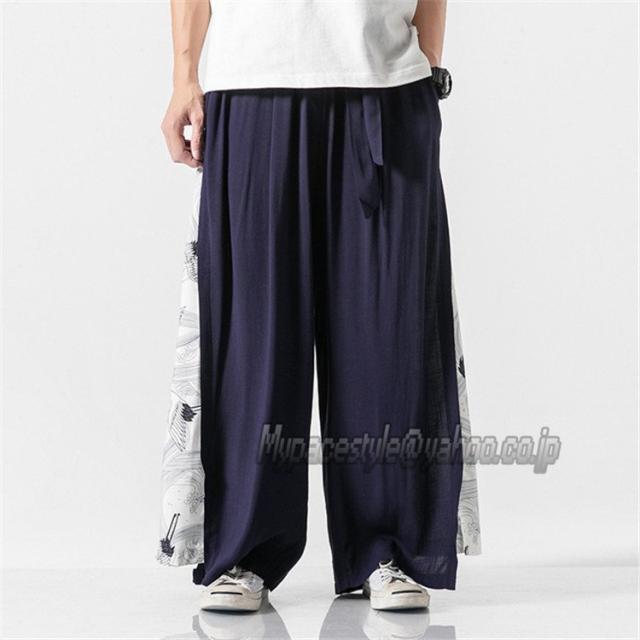 チノパン メンズ イージーパンツ サルエルパンツ カジュアル ボトムス 無地 ツ 綿麻パンツ チャイナ風 ゆったり目 コットン