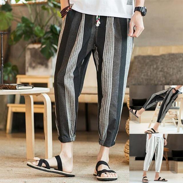 メンズサルエルパンツ チノパン綿麻ズボンハロンパンツ ゆったり 大きいサイズありワイド カジュアル