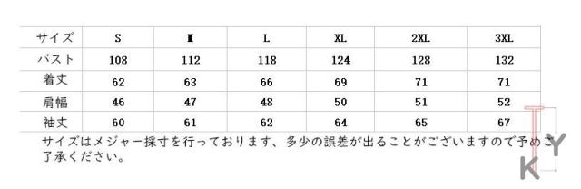 | サイズ | S M L XL 2XL 3XL |