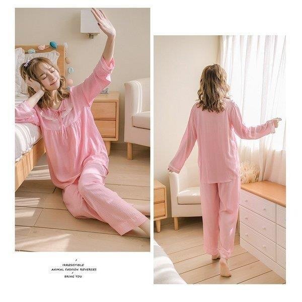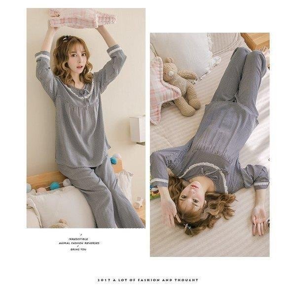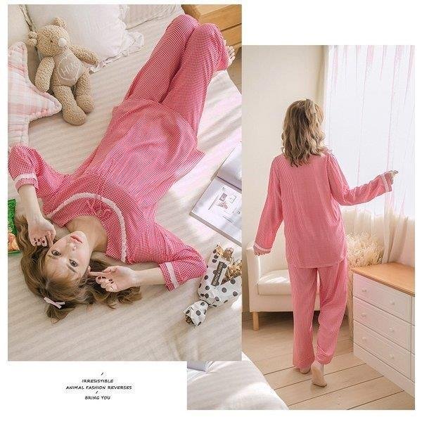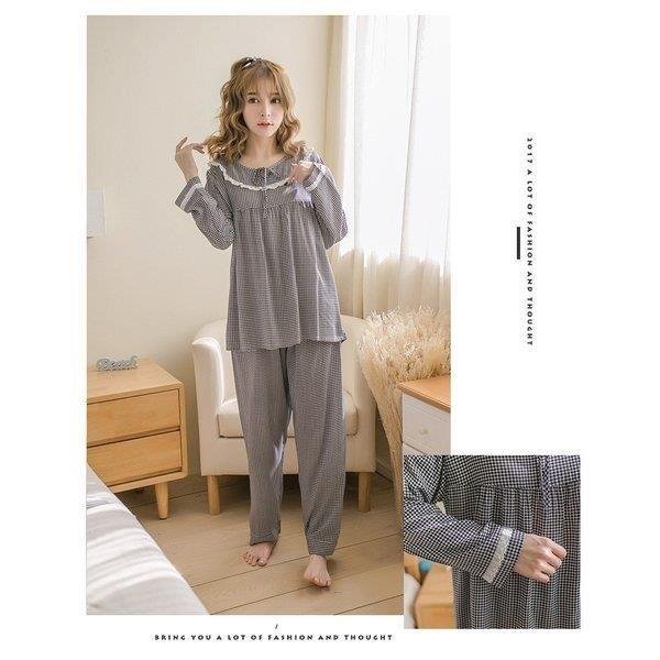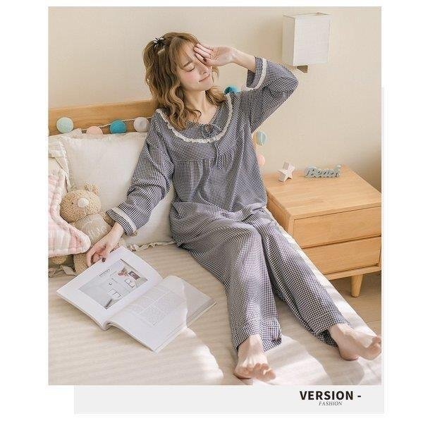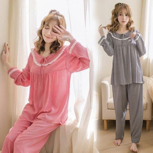 パジャマ レディース 秋冬 長袖 パジャマ 綿 チェック柄パジャマ 上下セット レースパジャマ 可愛い ルームウェア ゆったり女性 部屋着 寝巻き 3色