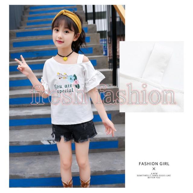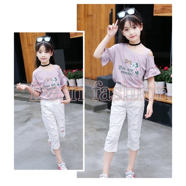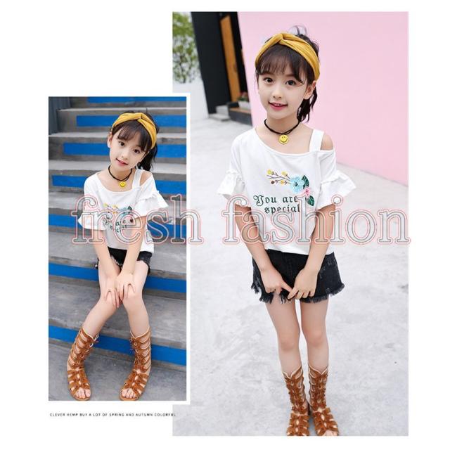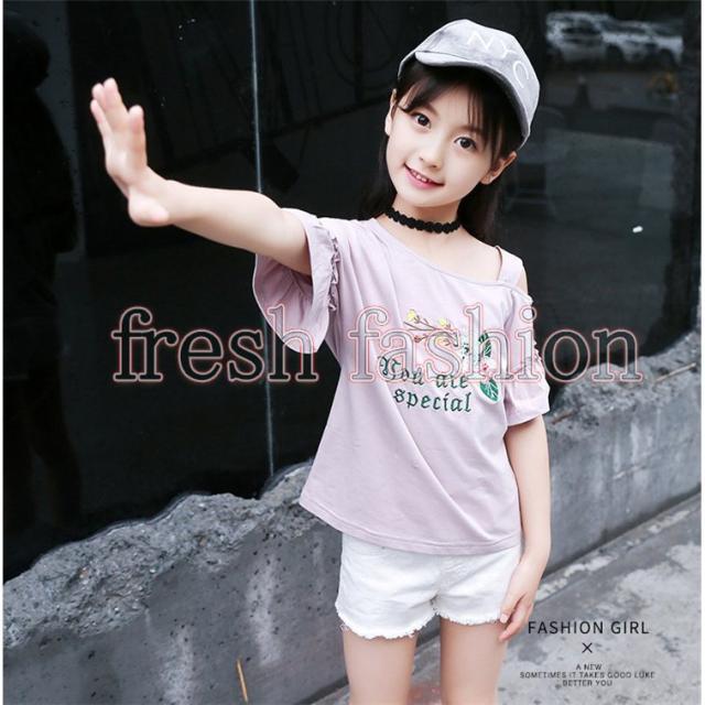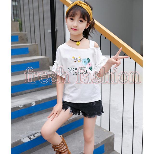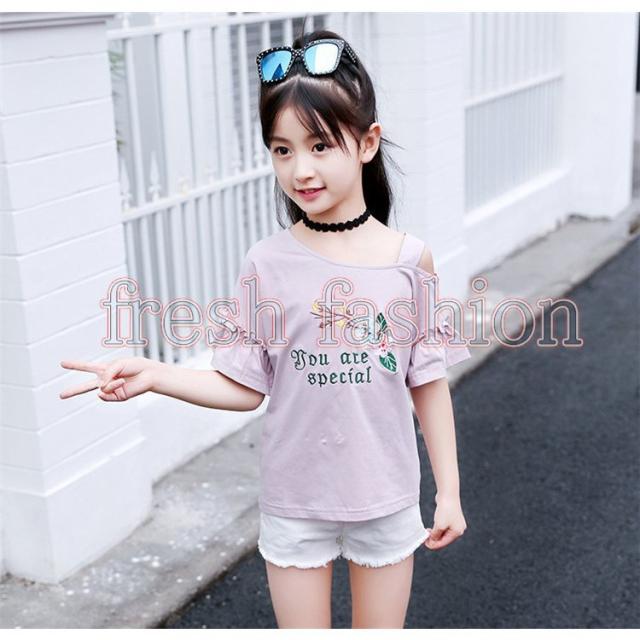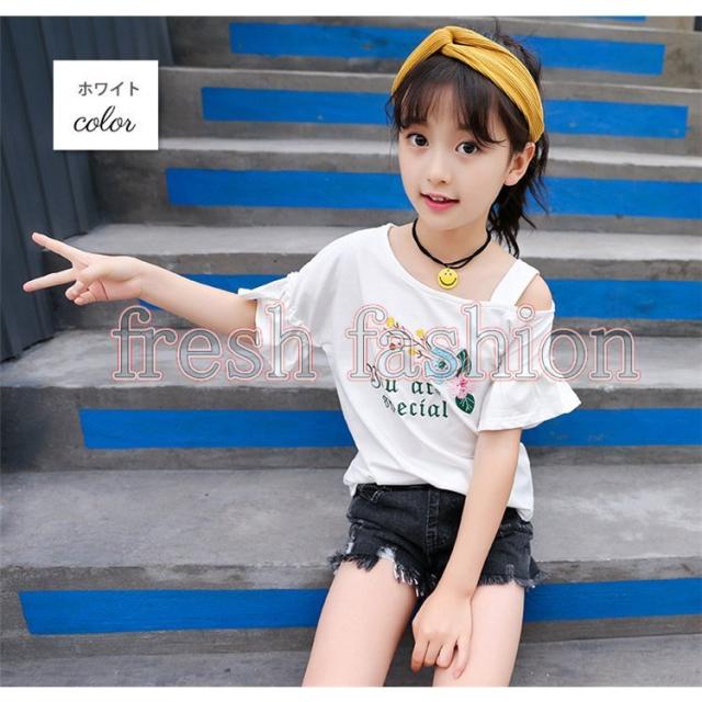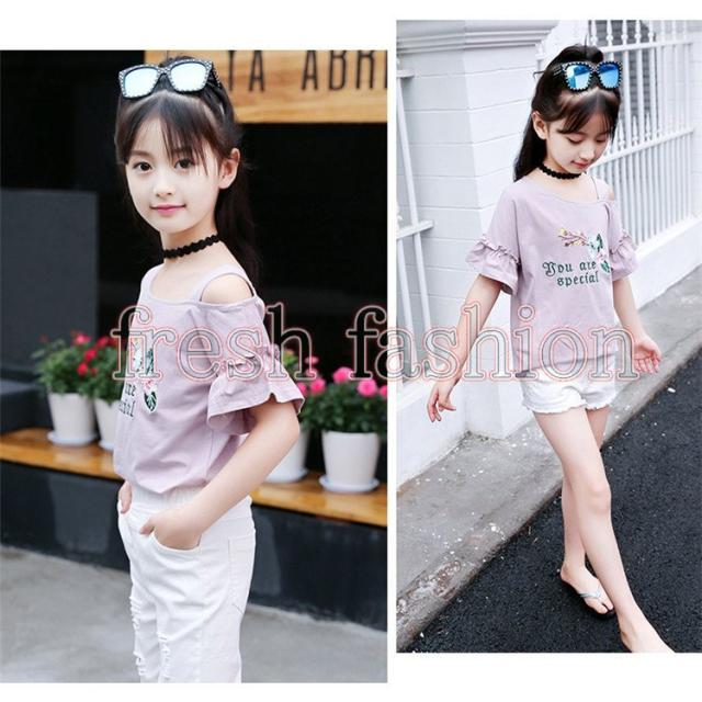 tシャツ キッズ 半袖 夏服 韓国子供服 女の子 トップス ブラウス Tシャツ 綿 肩出し カットソー 子供服 ベビー服 カジュアル 可愛い おしゃれ お出かけ 新品
