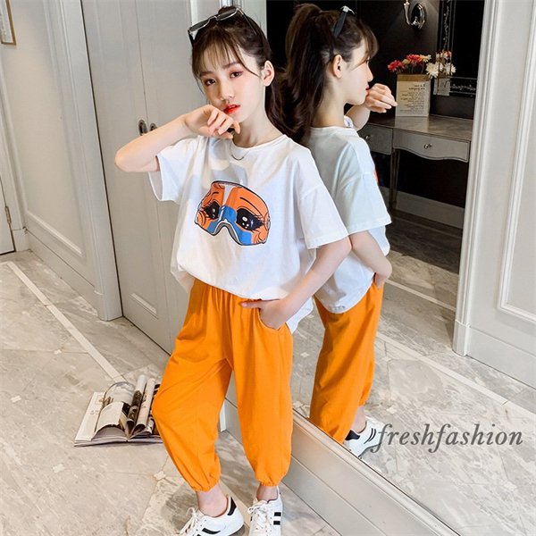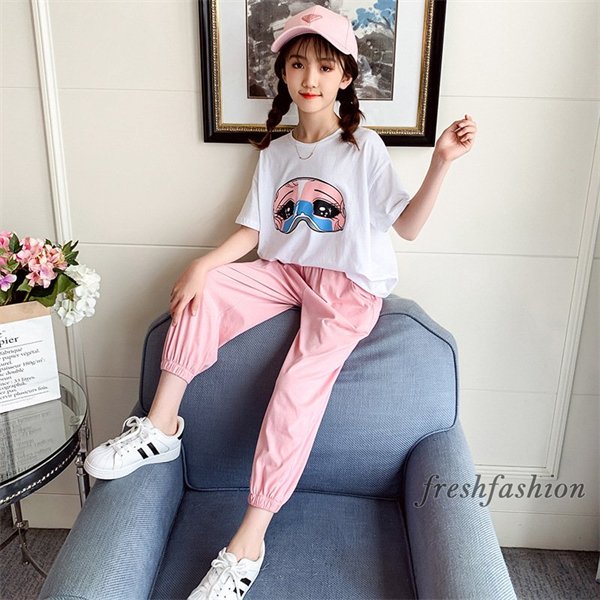 子供服 セットアップ キッズ 女の子 春夏 2点セット 上下セット Tシャツ 半袖 ロングパンツ ジャージ キッズ 運動着 おしゃれ 可愛い カジュアル 新品 150 160