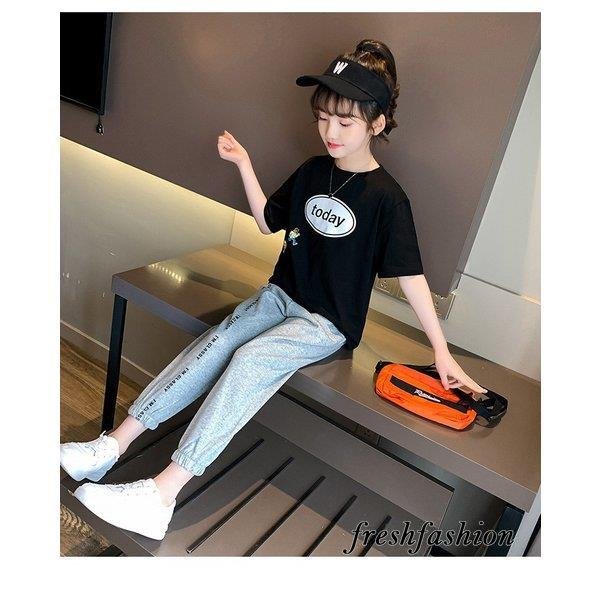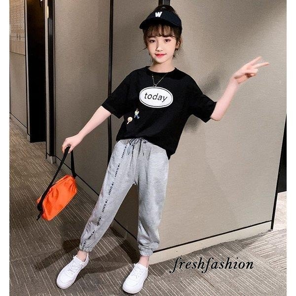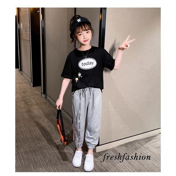 子供服 セットアップ キッズ 女の子 春夏 2点セット 上下セット Tシャツ 半袖 ロングパンツ ジャージ キッズ 運動着 おしゃれ 可愛い カジュアル 150 160