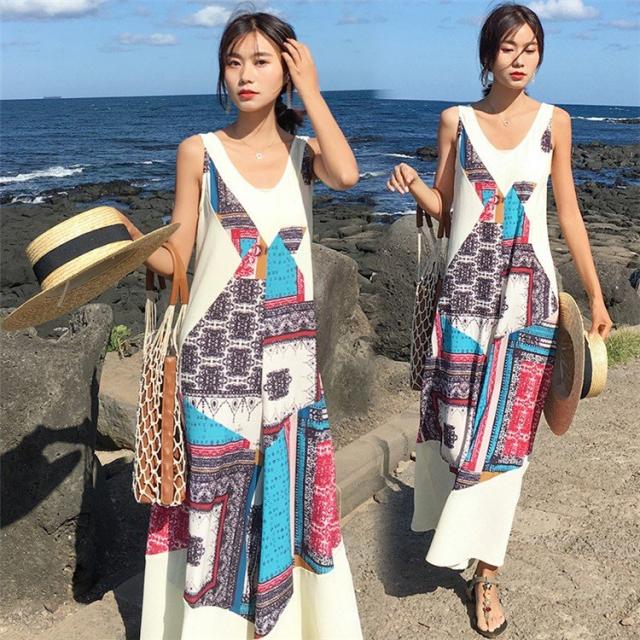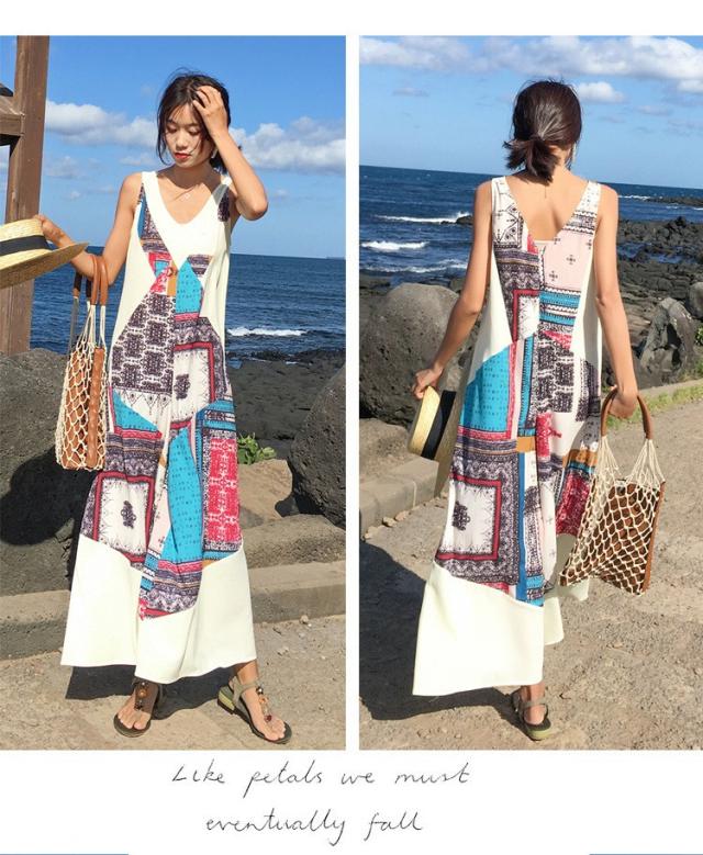 マキシ丈ワンピース マキシワンピ マキシワンピース ノースリーブ ワンピロング 夏ワンピース 大きいサイズ 民族風 肩出し旅行