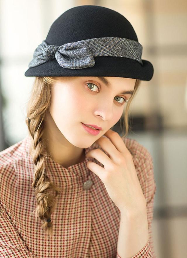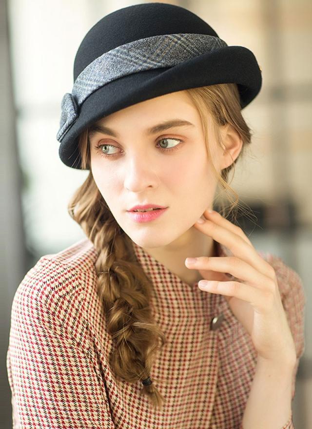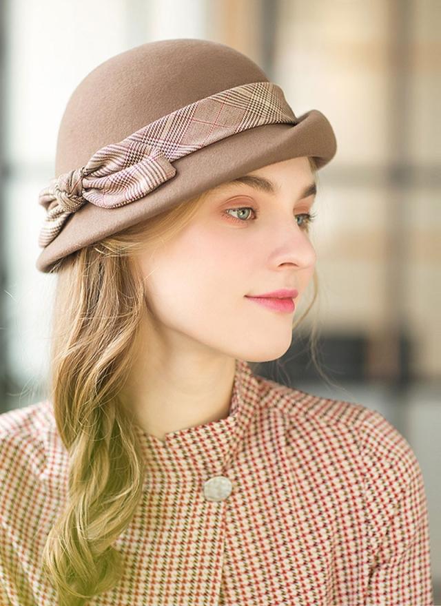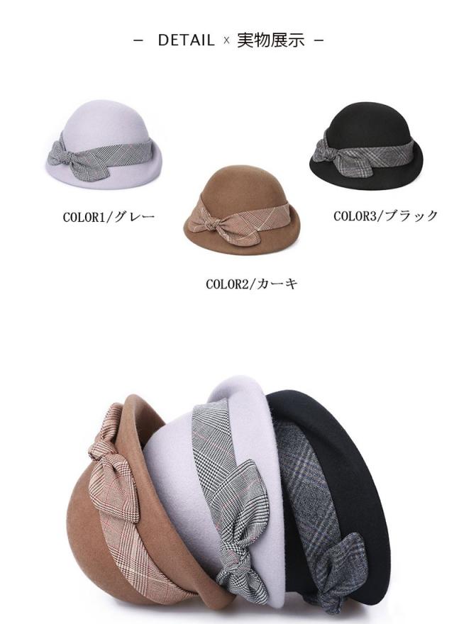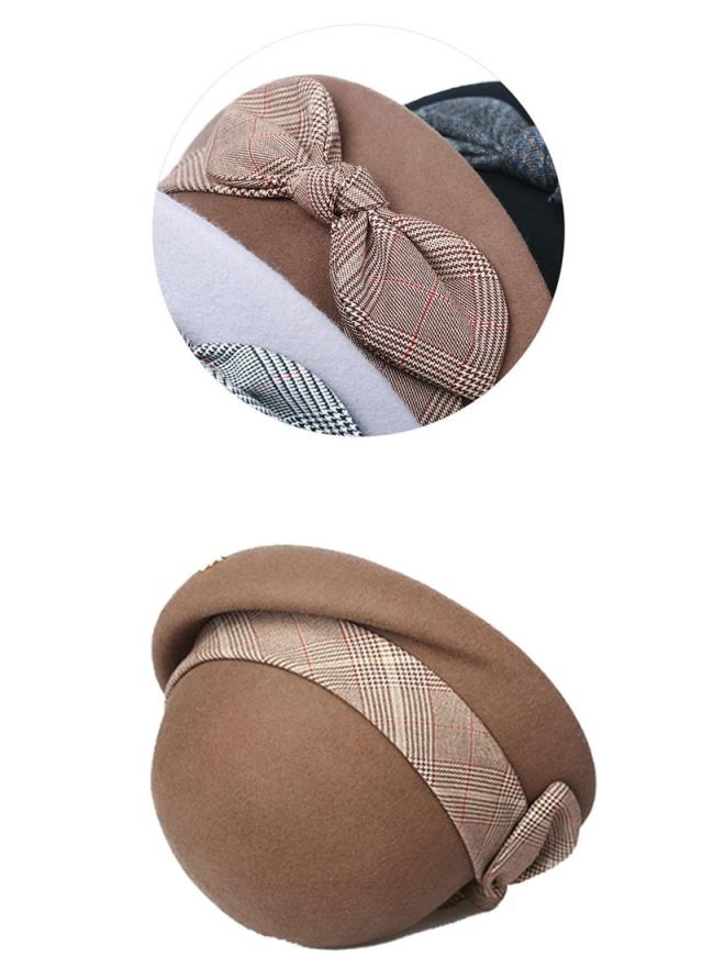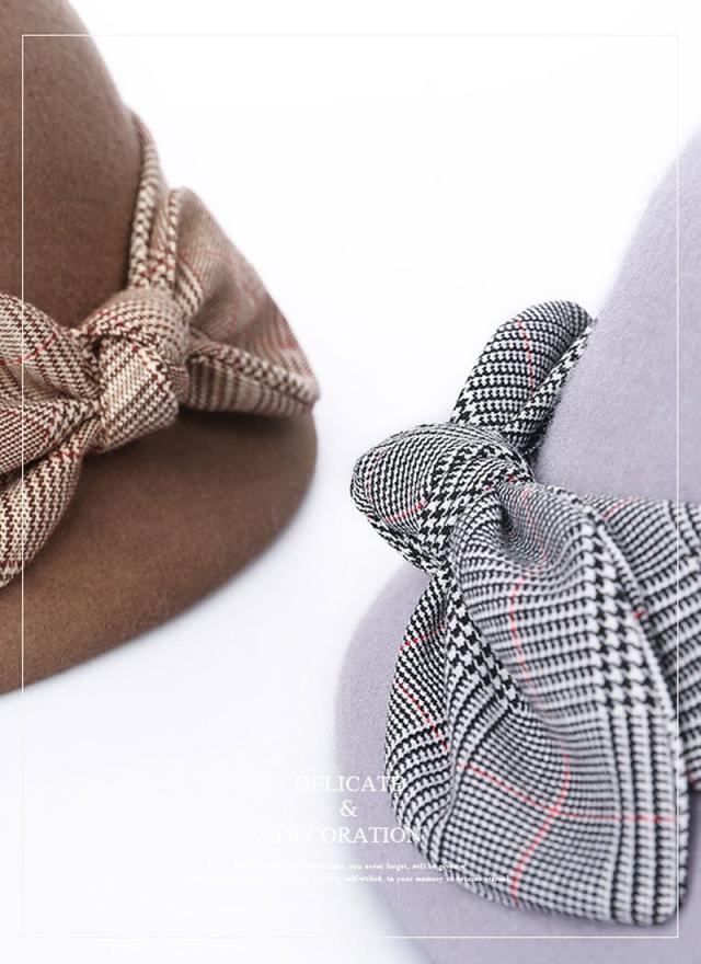 ベレー帽 レディース チェック 無地 フェルト ベレー帽 ハット 春 冬 帽子 ウール リボン付き 防寒 あったか 高級 上品 パーディー
