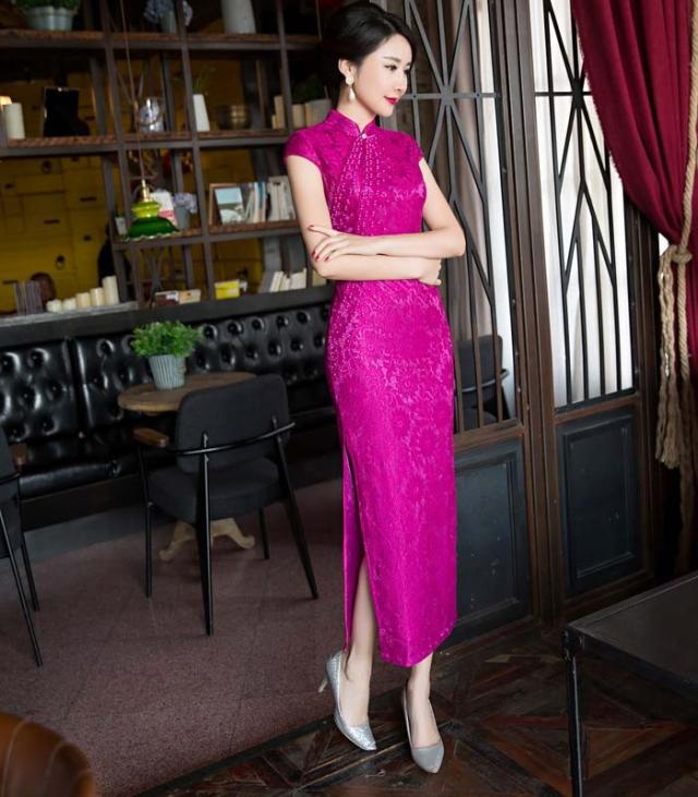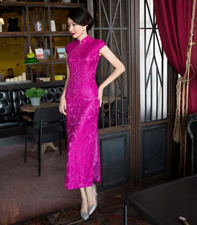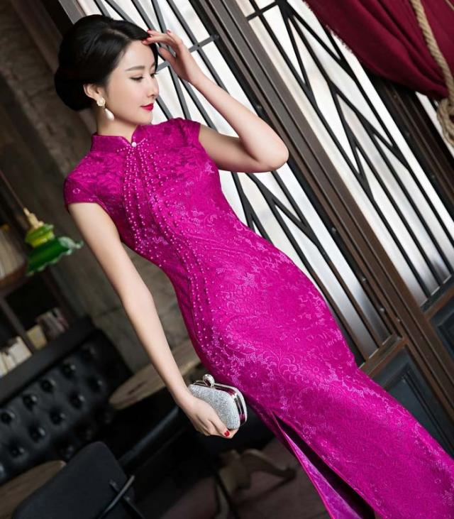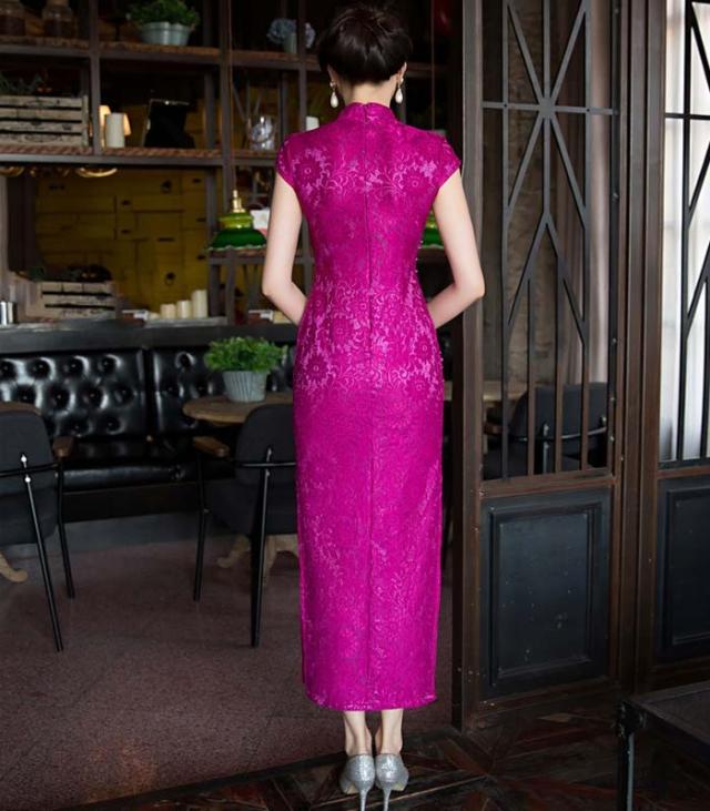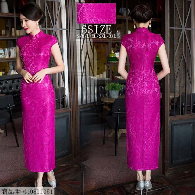 チャイナドレス 膝丈 チャイナドレス コスプレ チャイナドレス 半袖 チャイナドレス 大きいサイズ ストレッチ レース バラ色 高級
