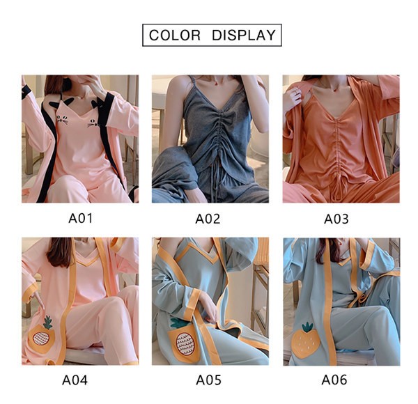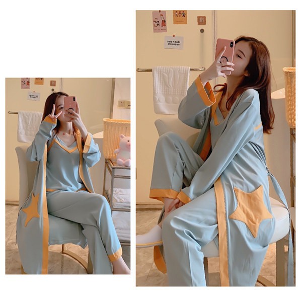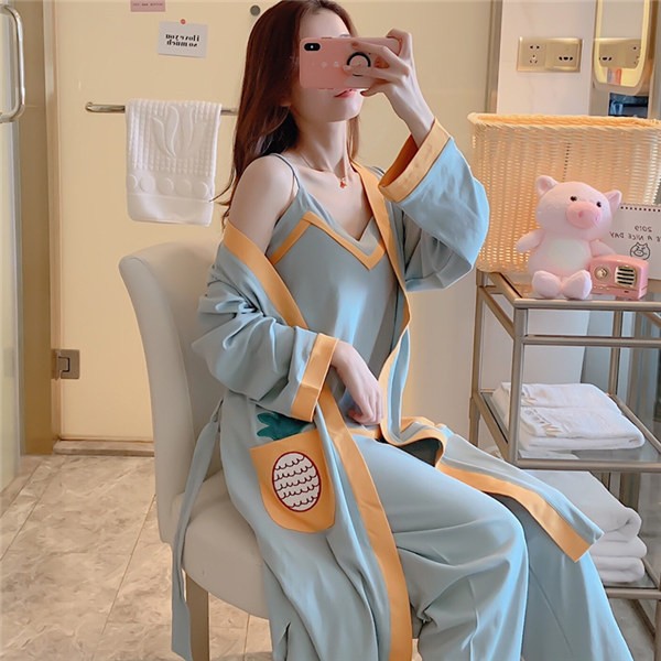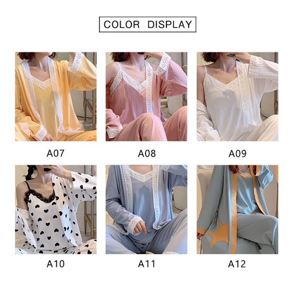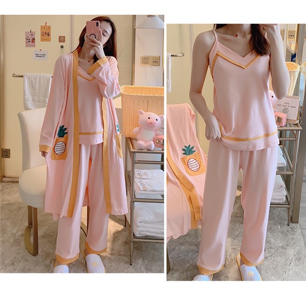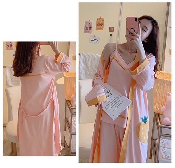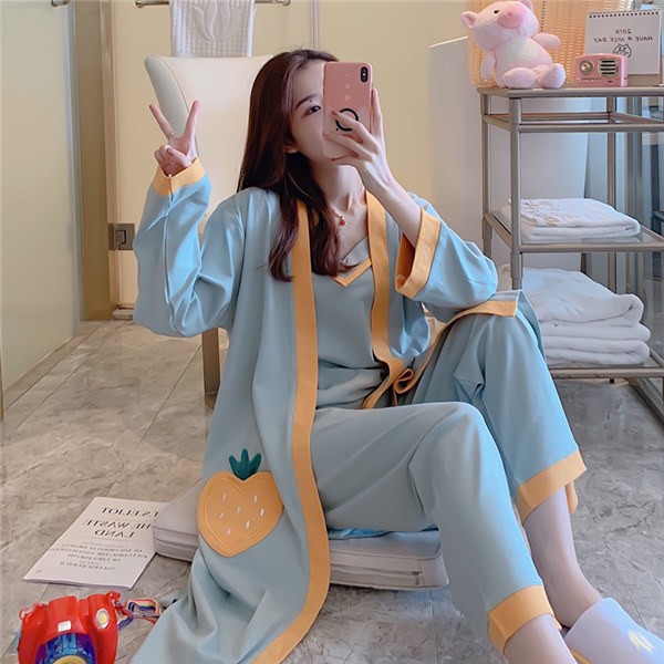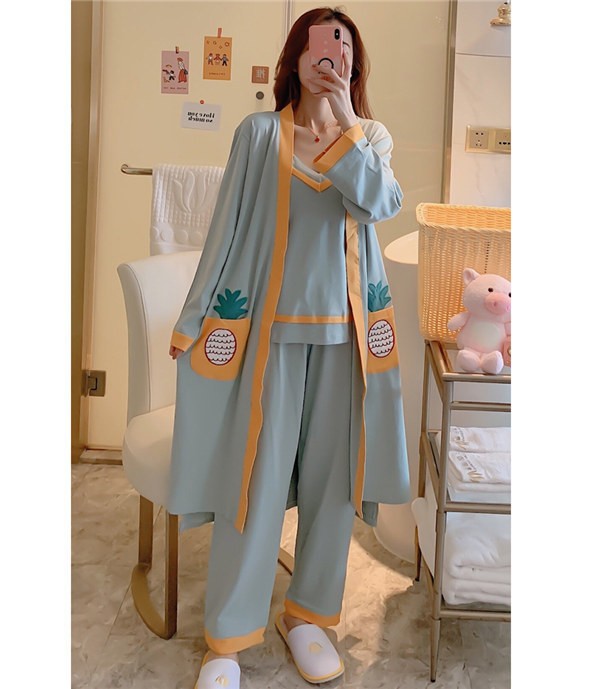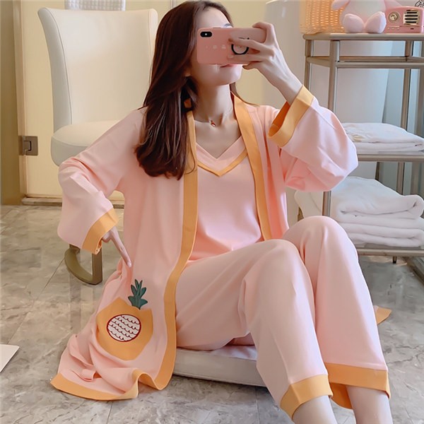 パジャマ ルームウェア レディース 春夏秋 長袖 3点セットアップ ロングパンツ 無地 ゆったり 部屋着 ナイトウェア 寝間着 前開け キャミソール