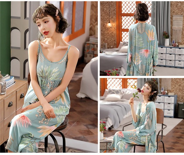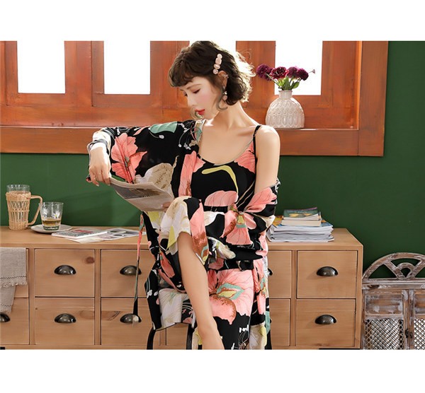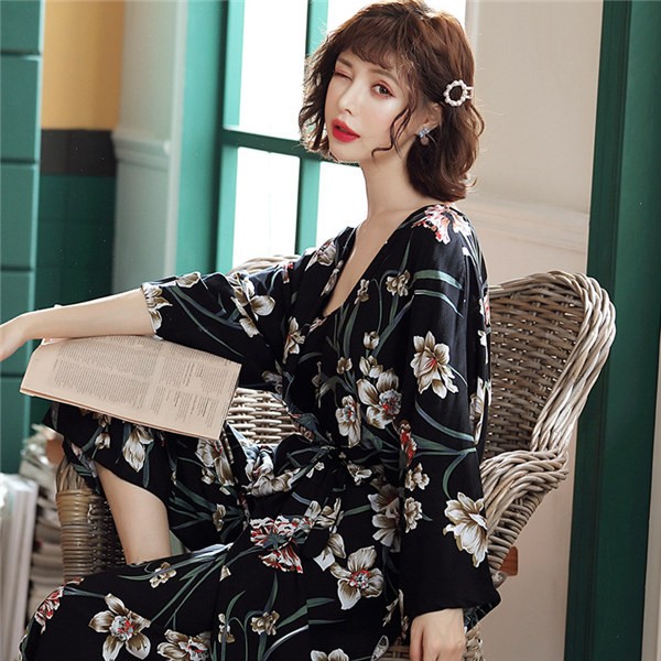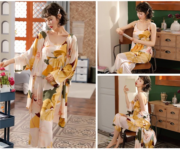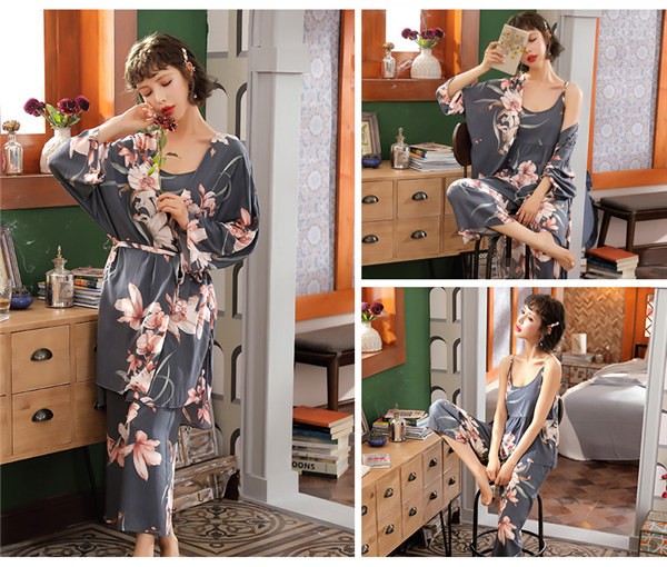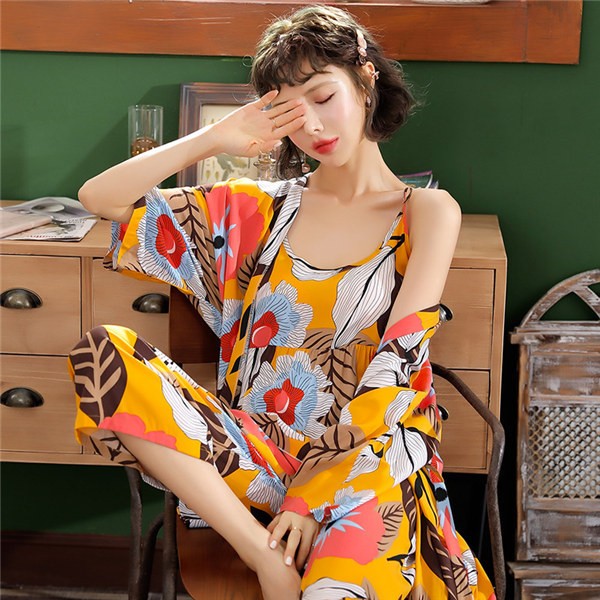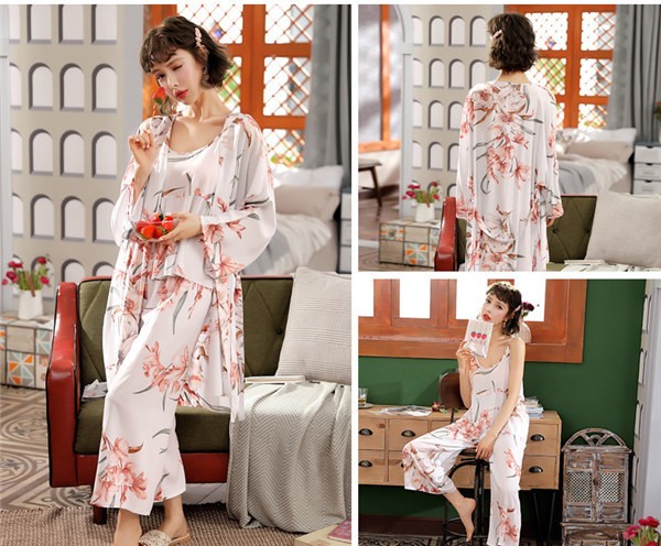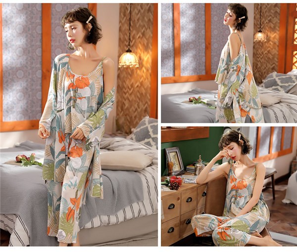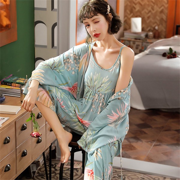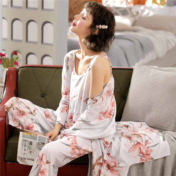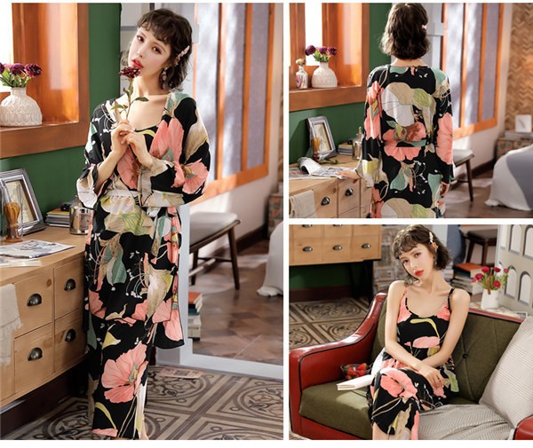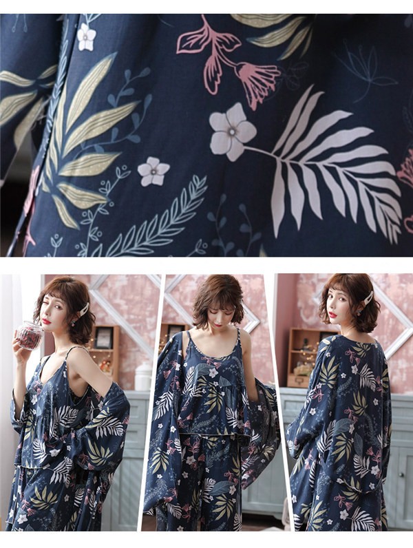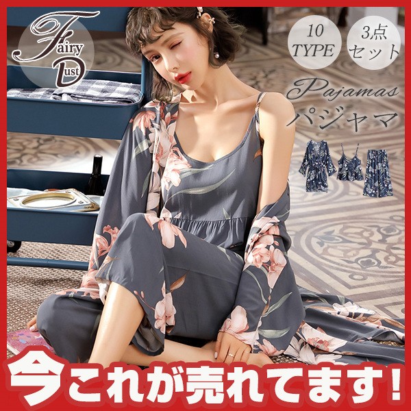 パジャマ ルームウェア レディース 春夏秋 長袖 3点セットアップ ロングパンツ 花柄 ゆったり 部屋着 ナイトウェア 寝間着 前開け キャミソール