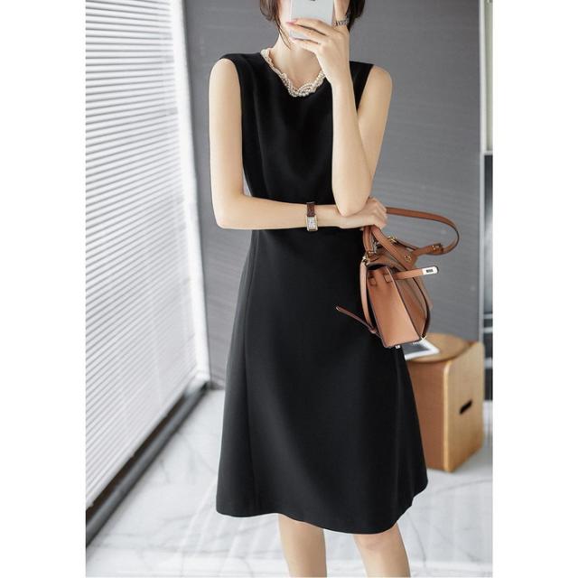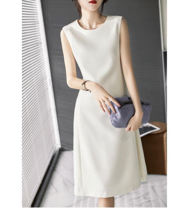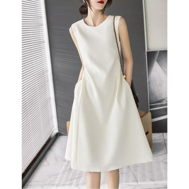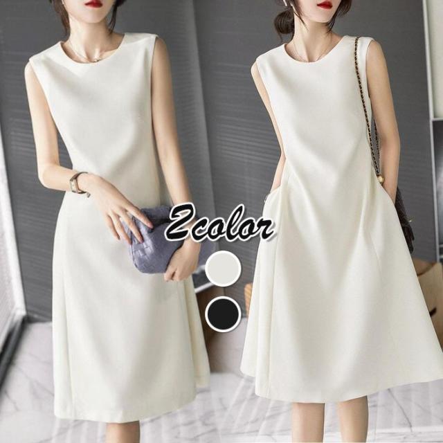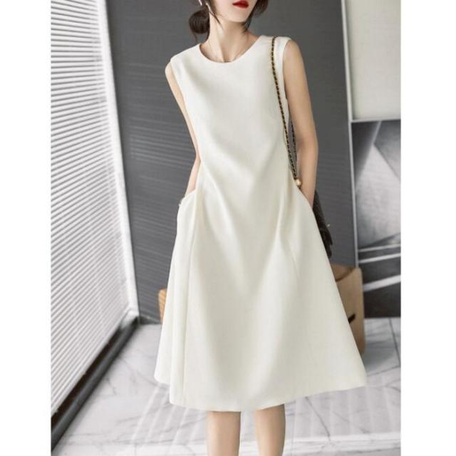 ワンピース レディース 40代 きれいめ 膝丈ワンピース 春夏新作 ノースリープワンピース オフィスワンピース 白 A ライン オシャレ韓国風 上品通勤 30代 50代