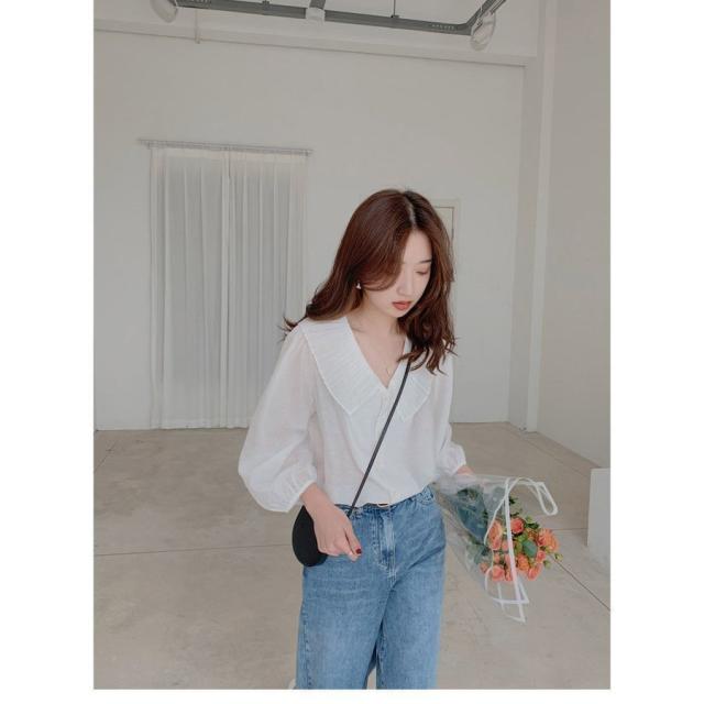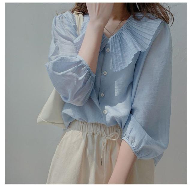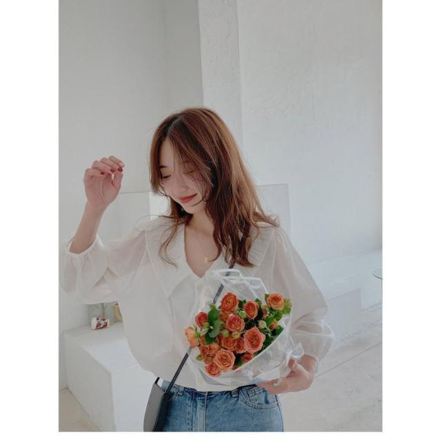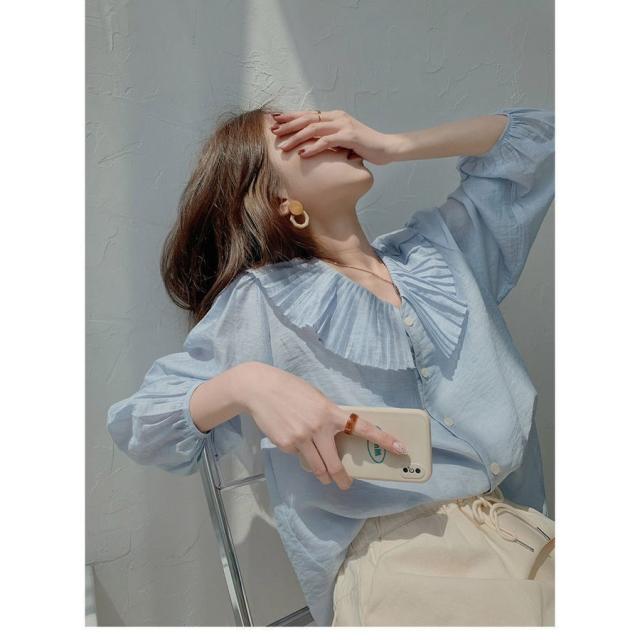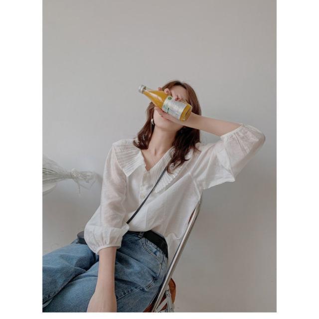 ブラウス レディース 40代 春夏秋新作 オシャレブラウス 白シフォンシャツ 七分袖トップス 折り襟 パフスリーブブラウス UVカット 大人 上品 通勤OL ゆったり