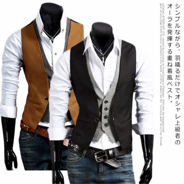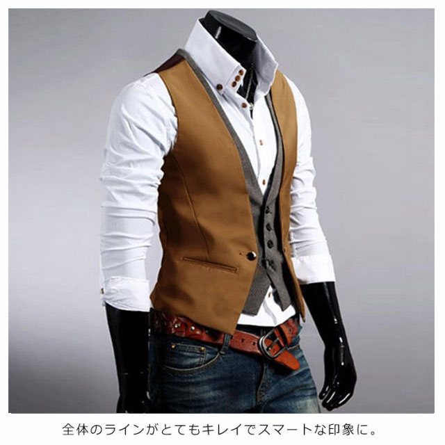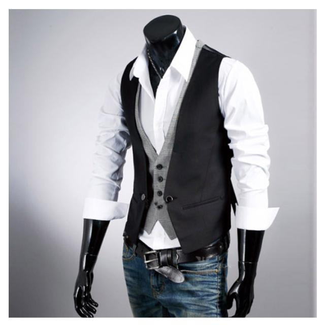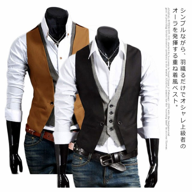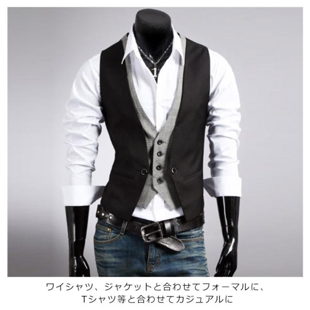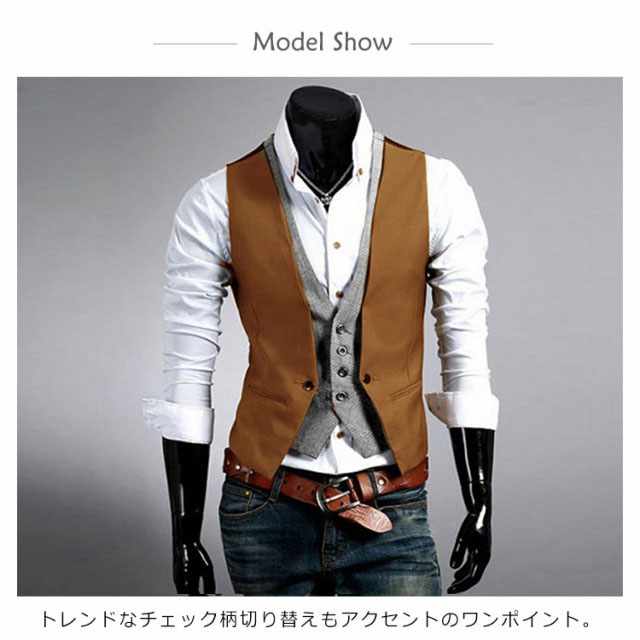 メンズベスト ベスト メンズ ジレベスト カジュアル トップス アウター 重ね着風 スリム ジレ フォーマル Vネック チェック 春 夏 秋 冬 ファッション 2次会 二次会 結婚式 お呼ばれ 父の日 ギフト送料無料