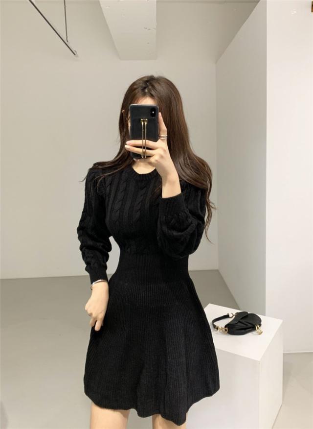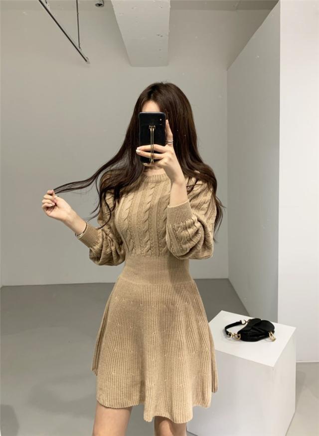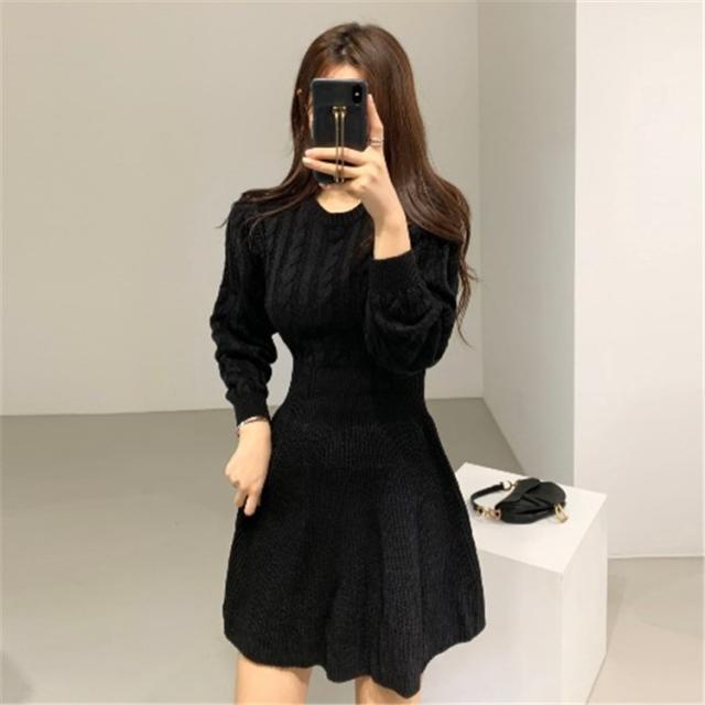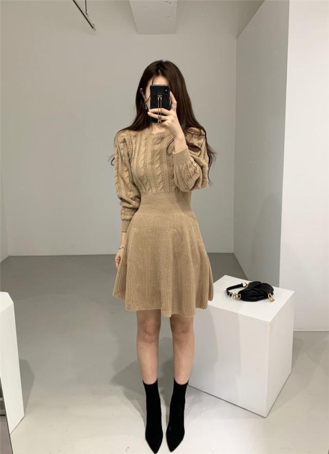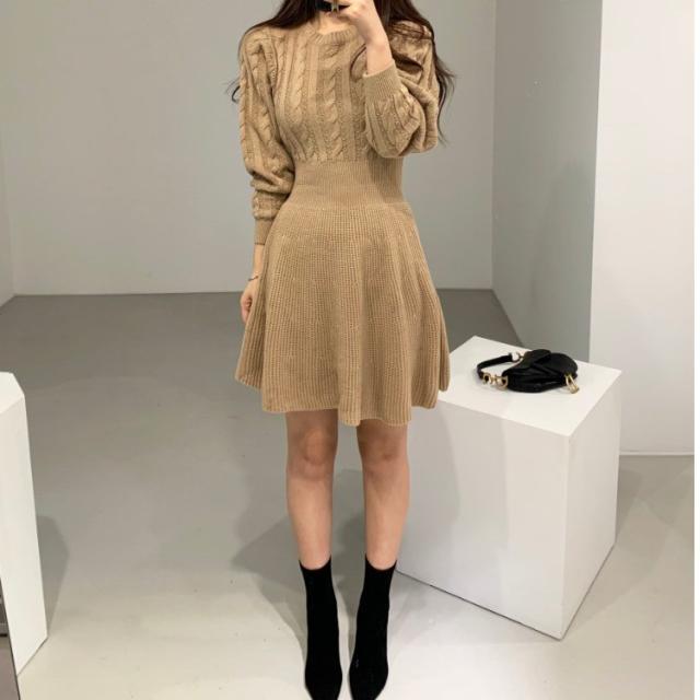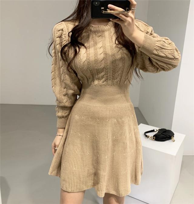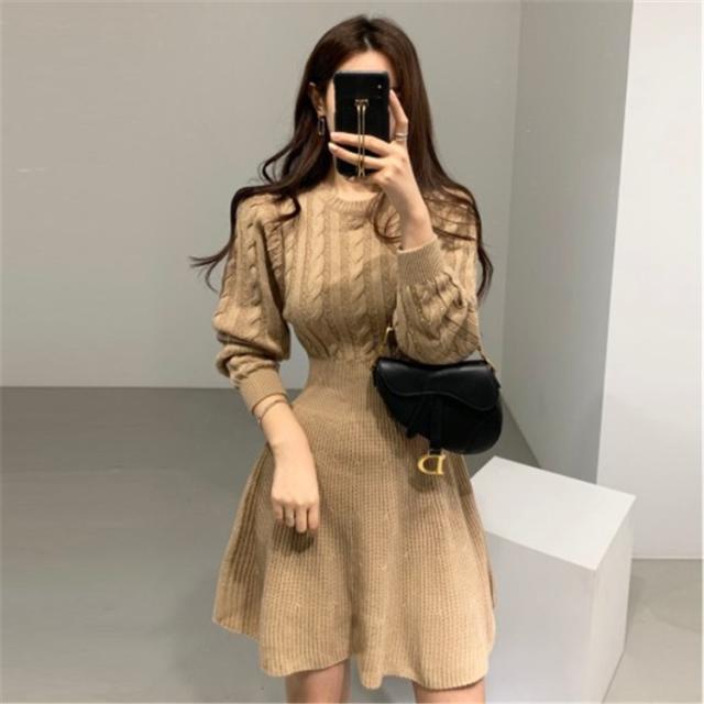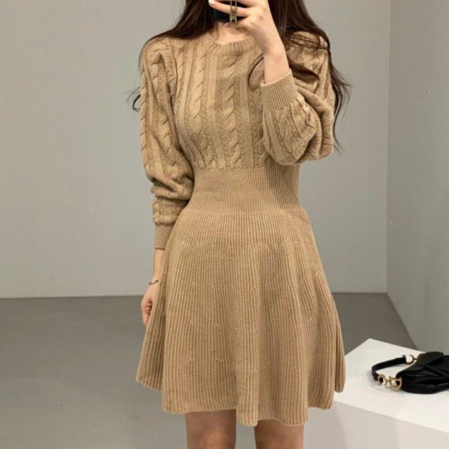 ニットワンピース コーデュロイ レディース ウエスト メリヤス セーター 秋冬 40代長袖トップス 韓国風 通勤 OL オシャレ 上品 体型カバー